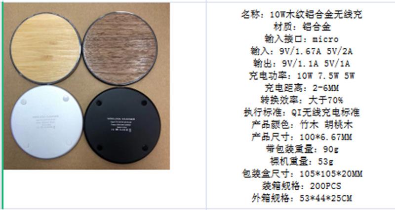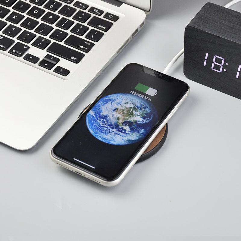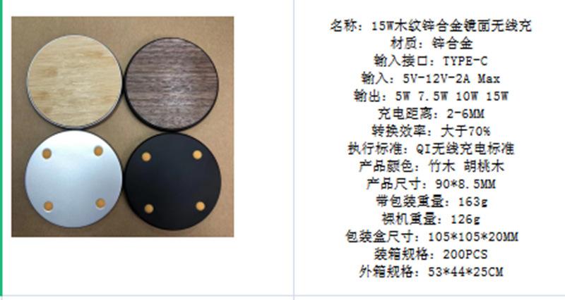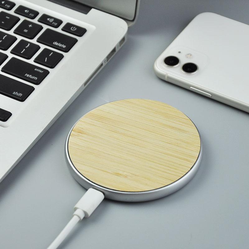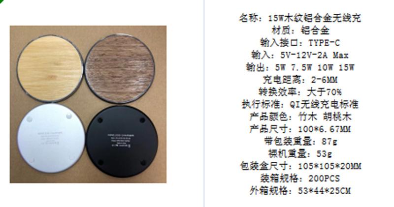 Nuevo cargador inalámbrico de aleación de zinc con veta de madera de 10 W/15 W, carga rápida inteligente para teléfonos móviles Apple 12/13