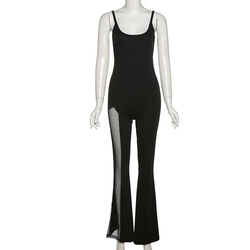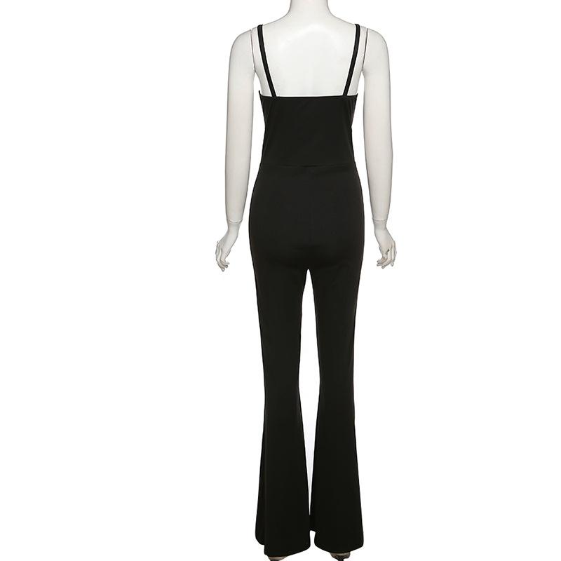Europeo y Americano 2022 Primavera y Verano Nuevo Moda para Mujer Tirantes Sexy Escote Bajo Espalda Descubierta Color Puro Corte Slim Ligeramente Acampanado Mono para Mujer