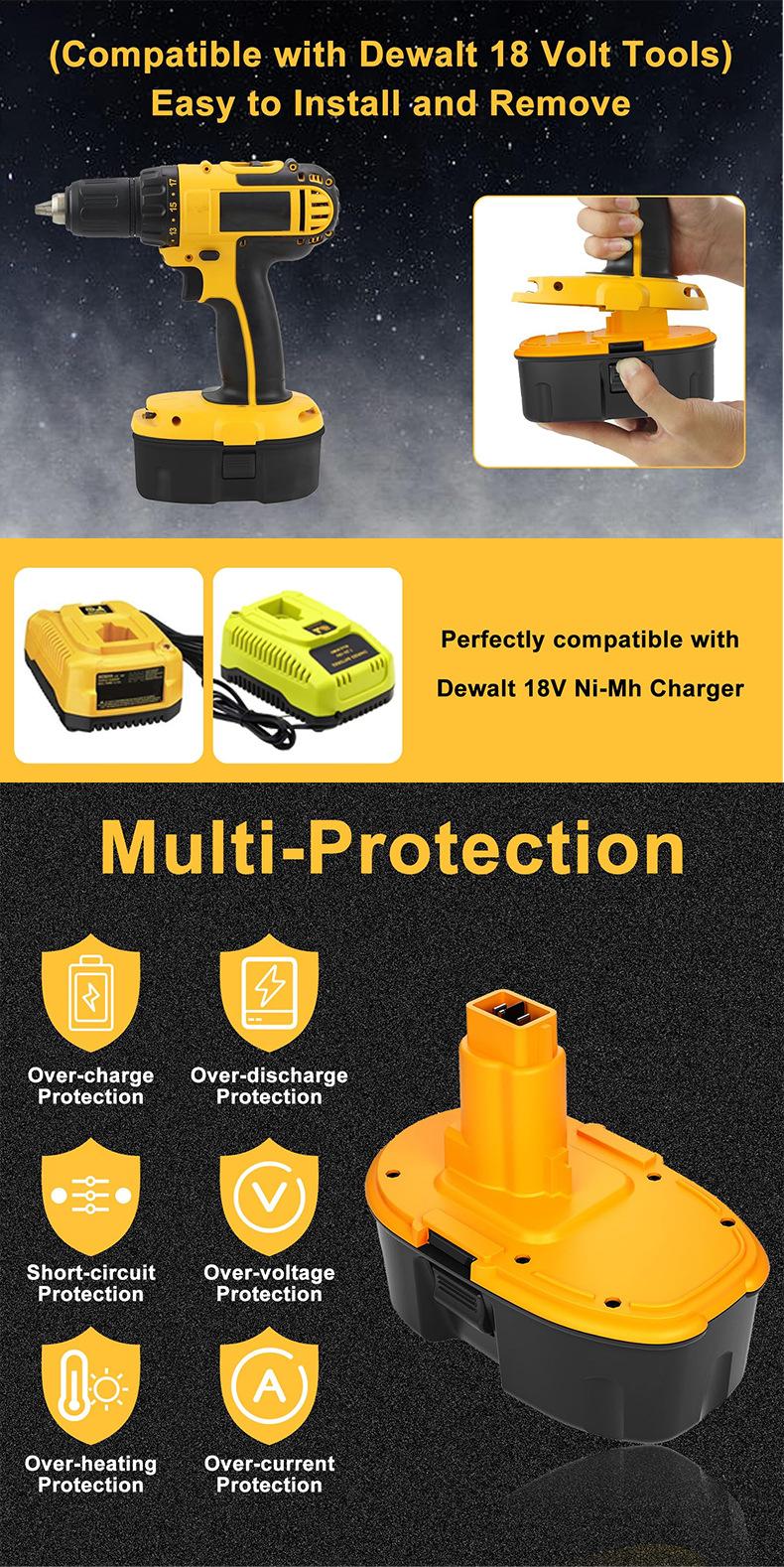 Reemplazo para Batería Dewalt Dc9096 18V6Ah Nimh Herramienta Dc9096/Dw9098 Paquete de Baterías Nimh