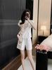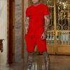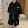 Conjunto informal de dos piezas de manga corta de color sólido para jóvenes, holgado, moderno y transfronterizo, para hombre, de comercio exterior, de verano, estilo europeo y americano