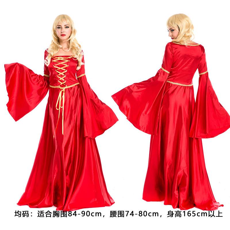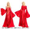 Disfraz de Palacio Vintage Halloween Medieval Rojo Vino Reina de Palacio cos Fiesta de Mascarada Vestido Largo Vintage