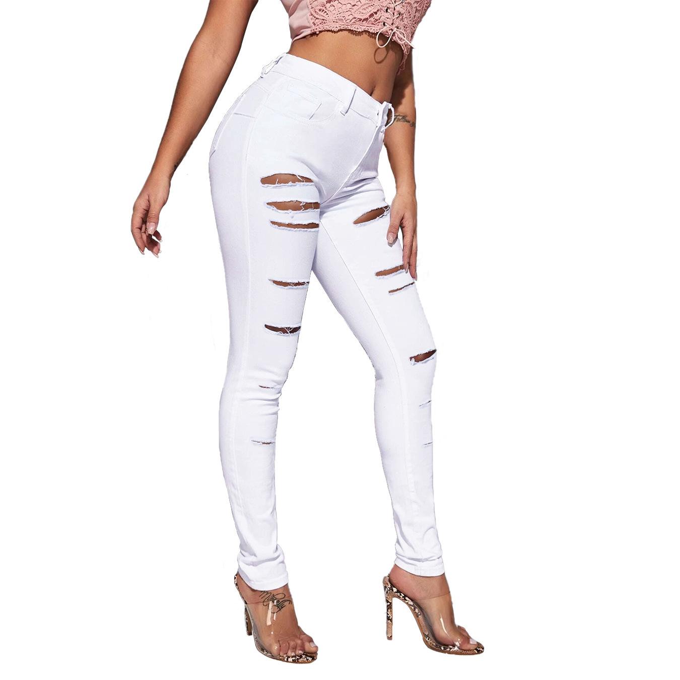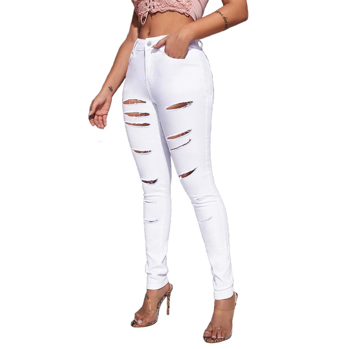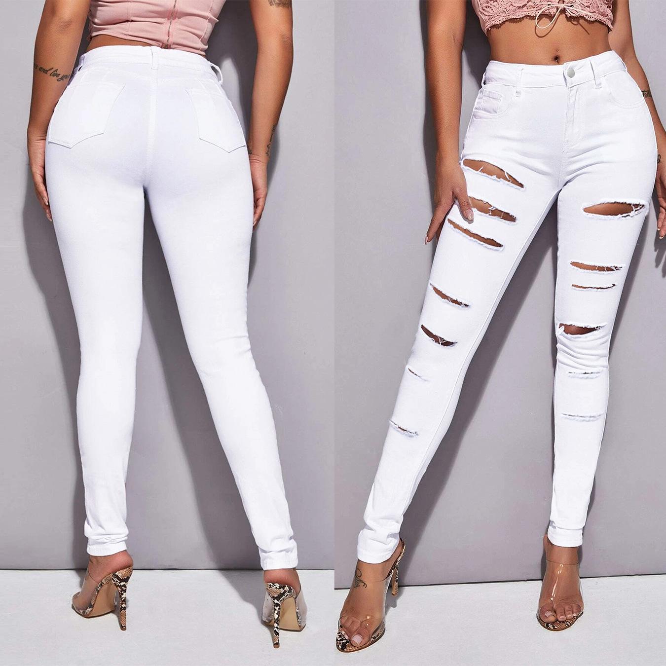 Deseo Amazon ebay pantalones vaqueros de verano elásticos europeos y americanos rotos hasta los tobillos para mujeres Denim