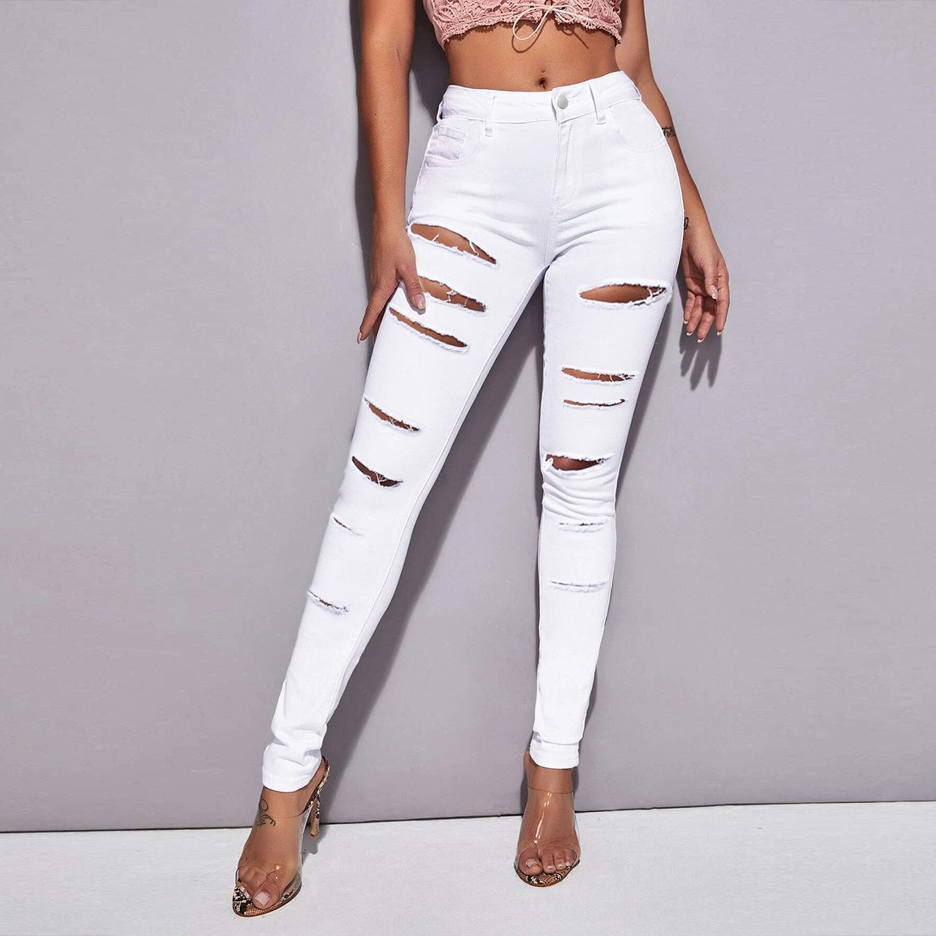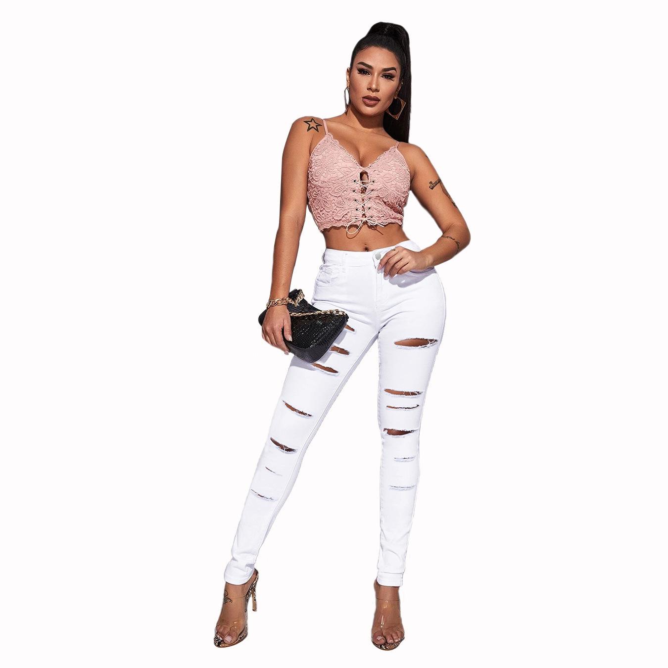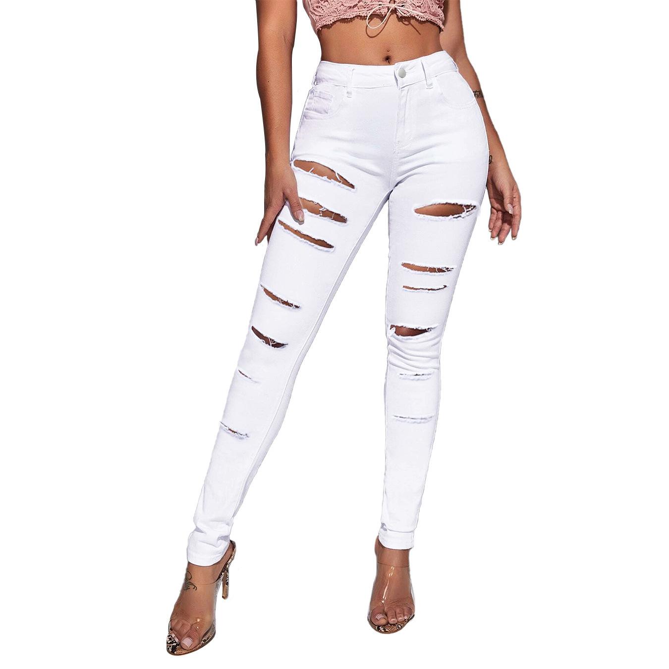 Deseo Amazon ebay pantalones vaqueros de verano elásticos europeos y americanos rotos hasta los tobillos para mujeres Denim