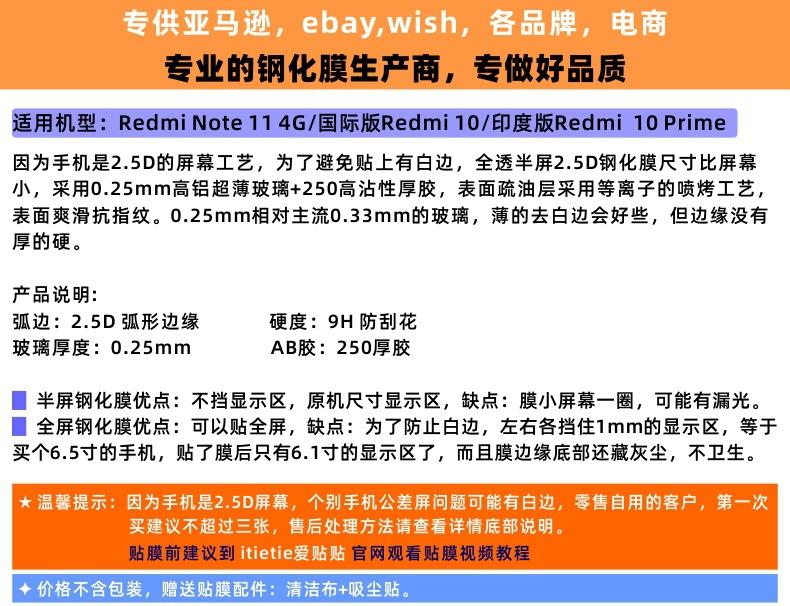 Pegatinas de amor para película templada Red Mi Note 11 4g, película protectora para teléfono móvil Redmi 10 de pantalla no completa