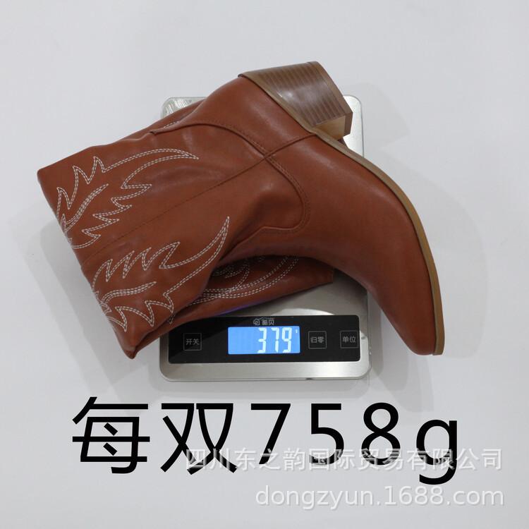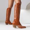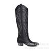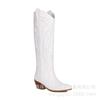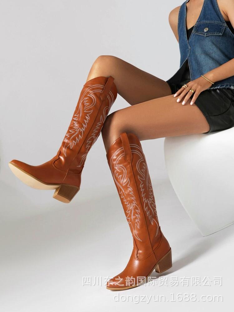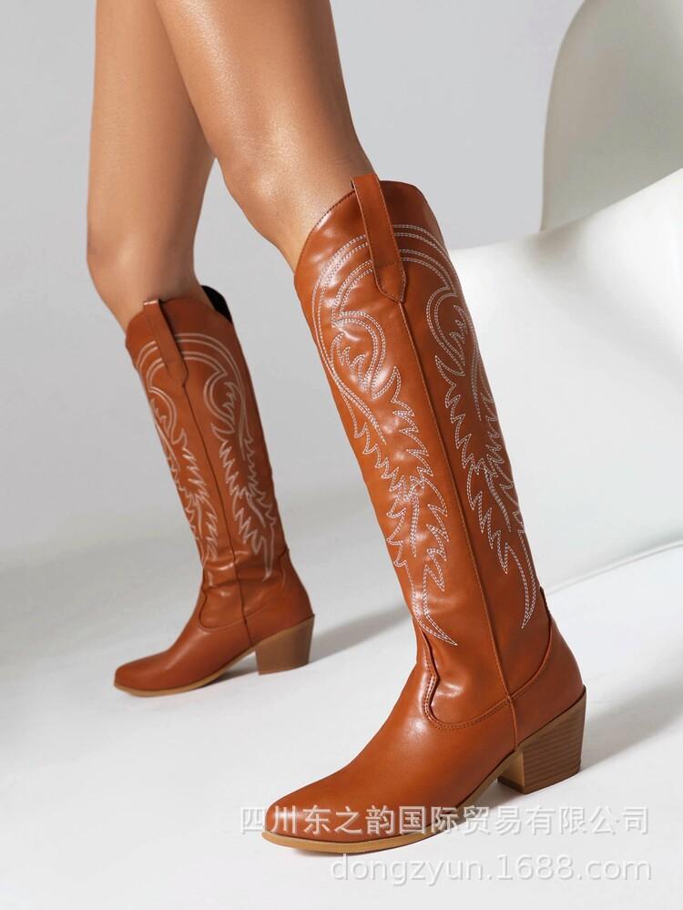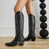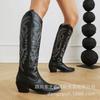 Botas de mujer de talla grande con comercio exterior transfronterizo entre Europa y Estados Unidos, botas altas de tacón grueso con hilo bordado a la moda, botas occidentales, 40-46