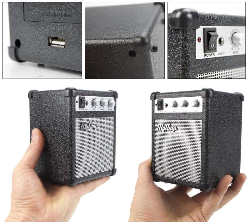 El ajuste de volumen es idéntico al de un amplificador real y su funcionamiento es sencillo. Solo tienes que girar el botón para seleccionar el efecto musical deseado. Se recomienda su uso como altavoz externo para el ordenador.USBLa línea de datos proporciona energía, conéctela.USBEl cable de datos se puede conectar a la computadora para alimentarlo. También se pueden usar pilas (no incluidas).