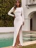 2026 Vestido de Manga Larga Más Vendido Moda Femenina Transfronteriza Cuello Redondo Estilo Europeo y Americano Sexy Espalda Descubierta Abertura Vestido Largo