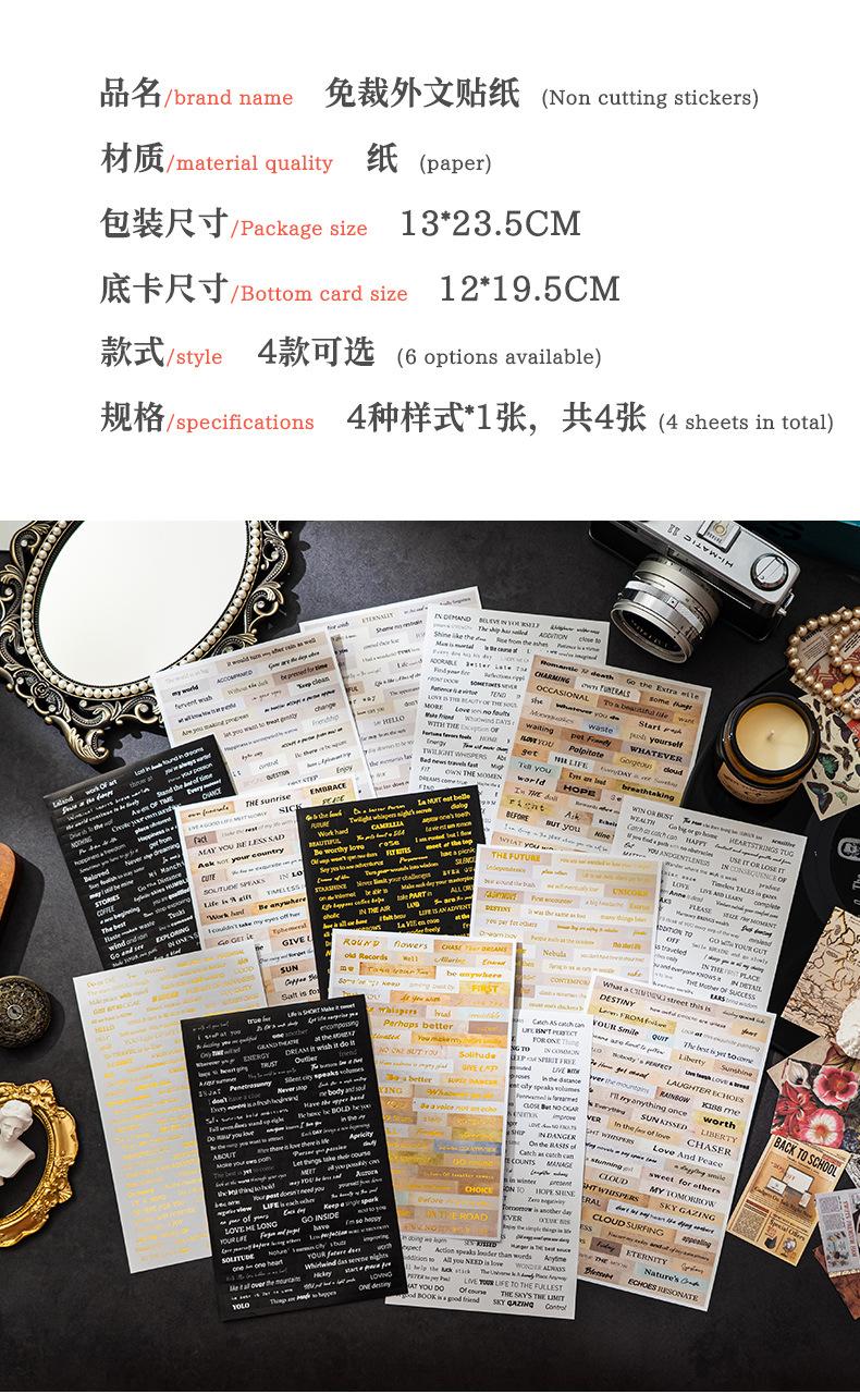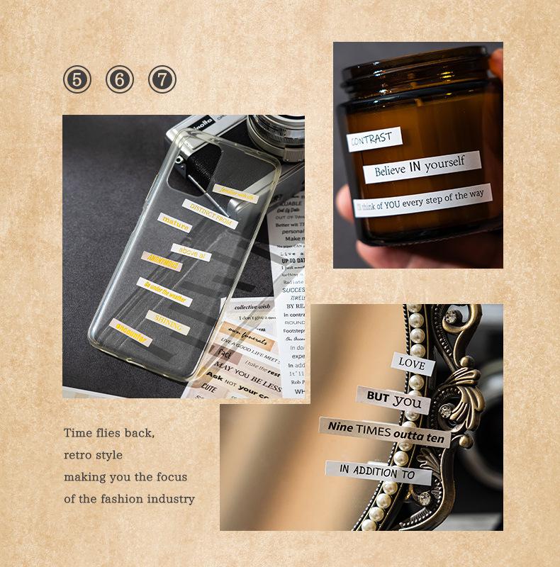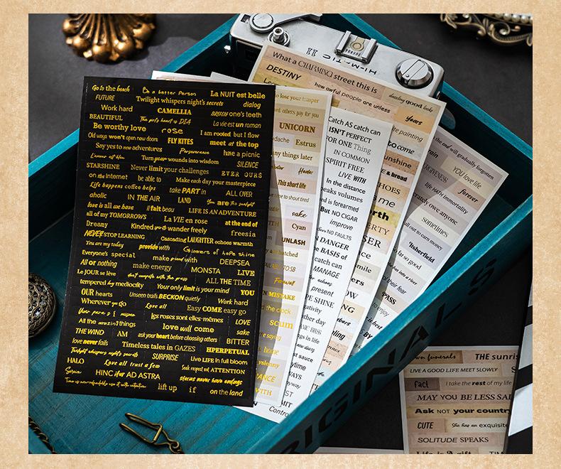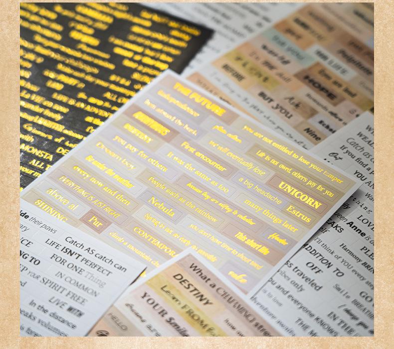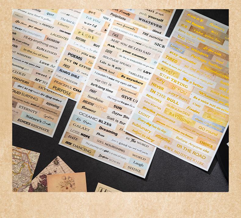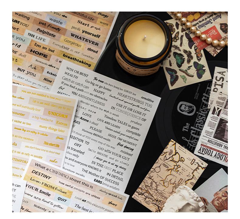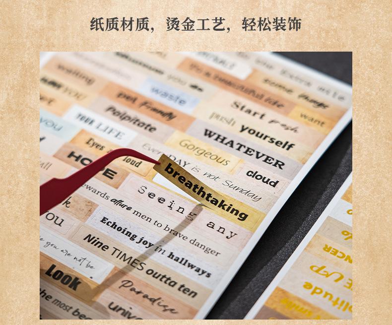 Pegatina de cuenta de mano de Amazon en idioma extranjero, pegatina decorativa de collage con letras en inglés retro creativas