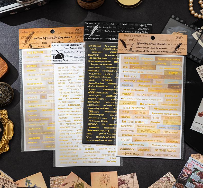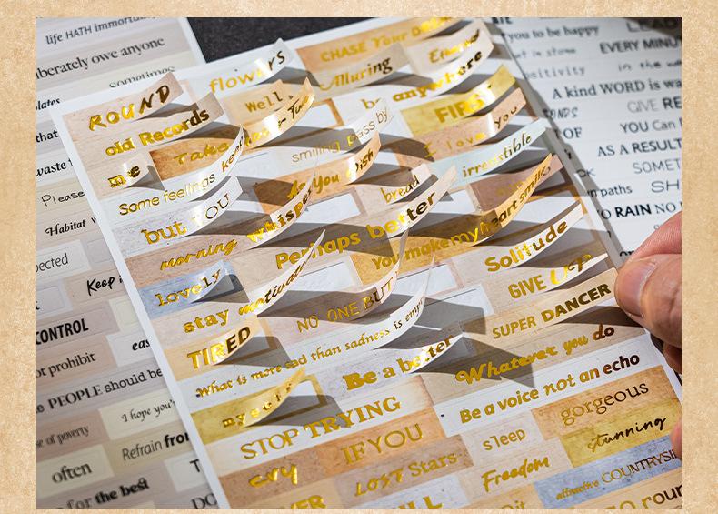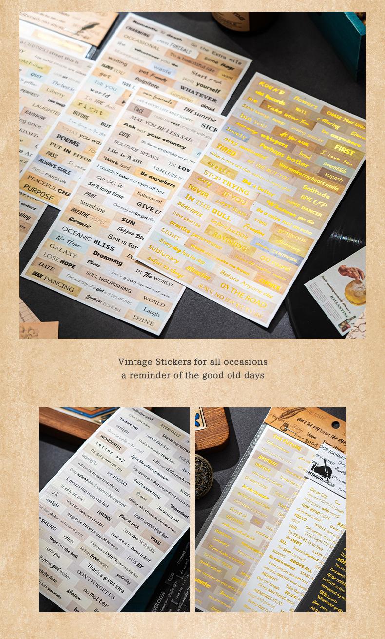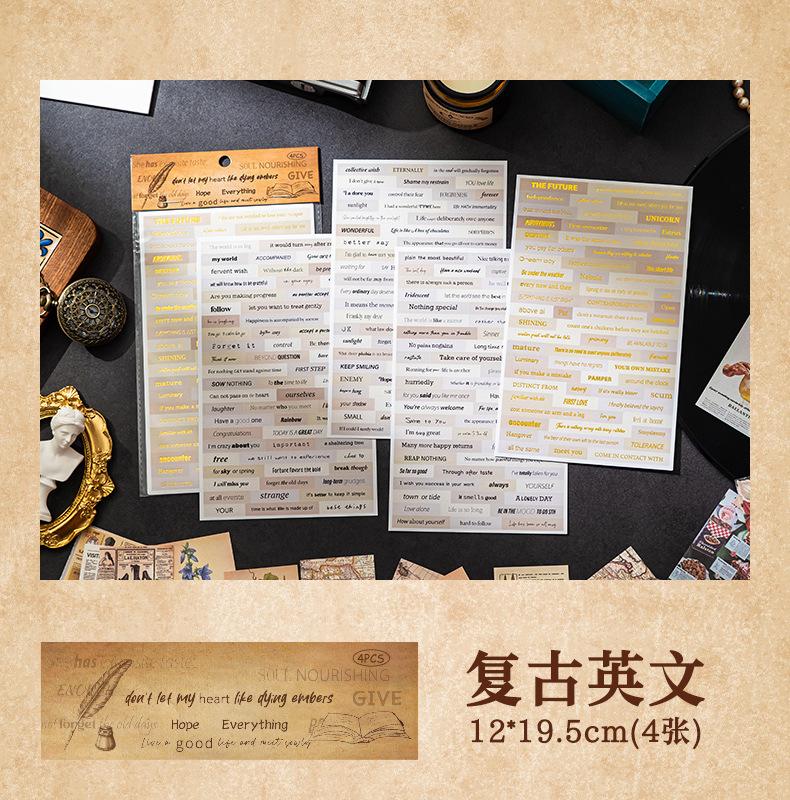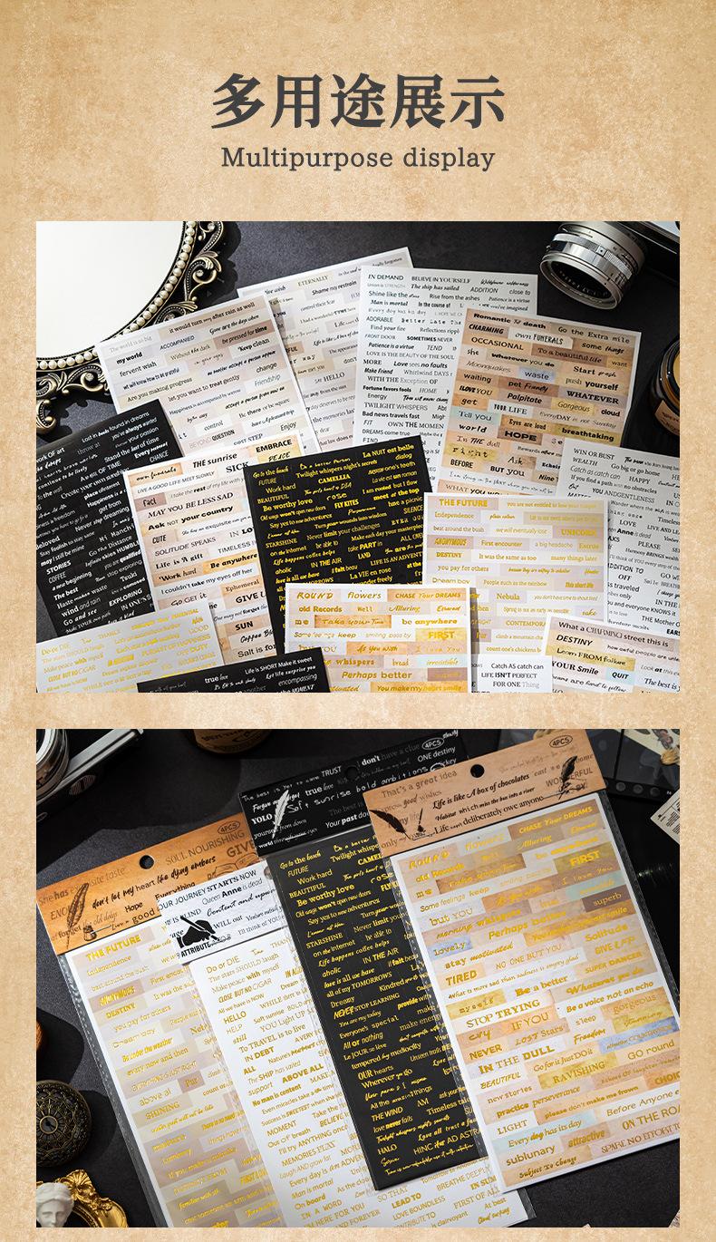 Pegatina de cuenta de mano de Amazon en idioma extranjero, pegatina decorativa de collage con letras en inglés retro creativas