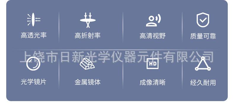Fabricante:Fábrica de Componentes Ópticos Rixin del Distrito Xinzhou de Shangrao,No. 48 Avenida Fenghuang, Distrito Xinzhou, Ciudad Shangrao, Provincia Jiangxi.