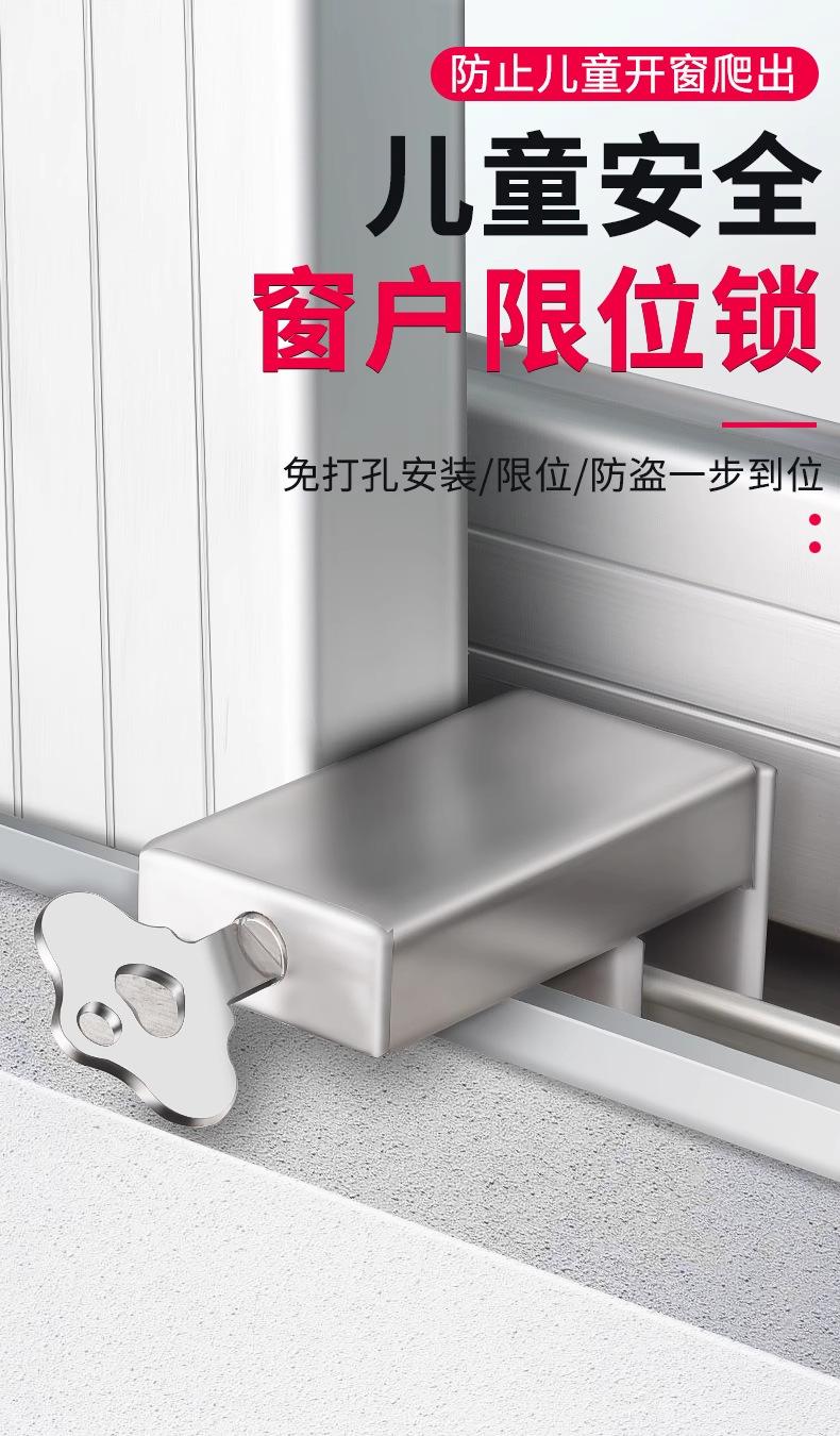Tope de ventana, cerradura de ventana fija de aleación de aluminio, pantalla de ventana, ventana corrediza, posición de tarjeta, cerradura de seguridad para niños, puerta del hogar, antirrobo