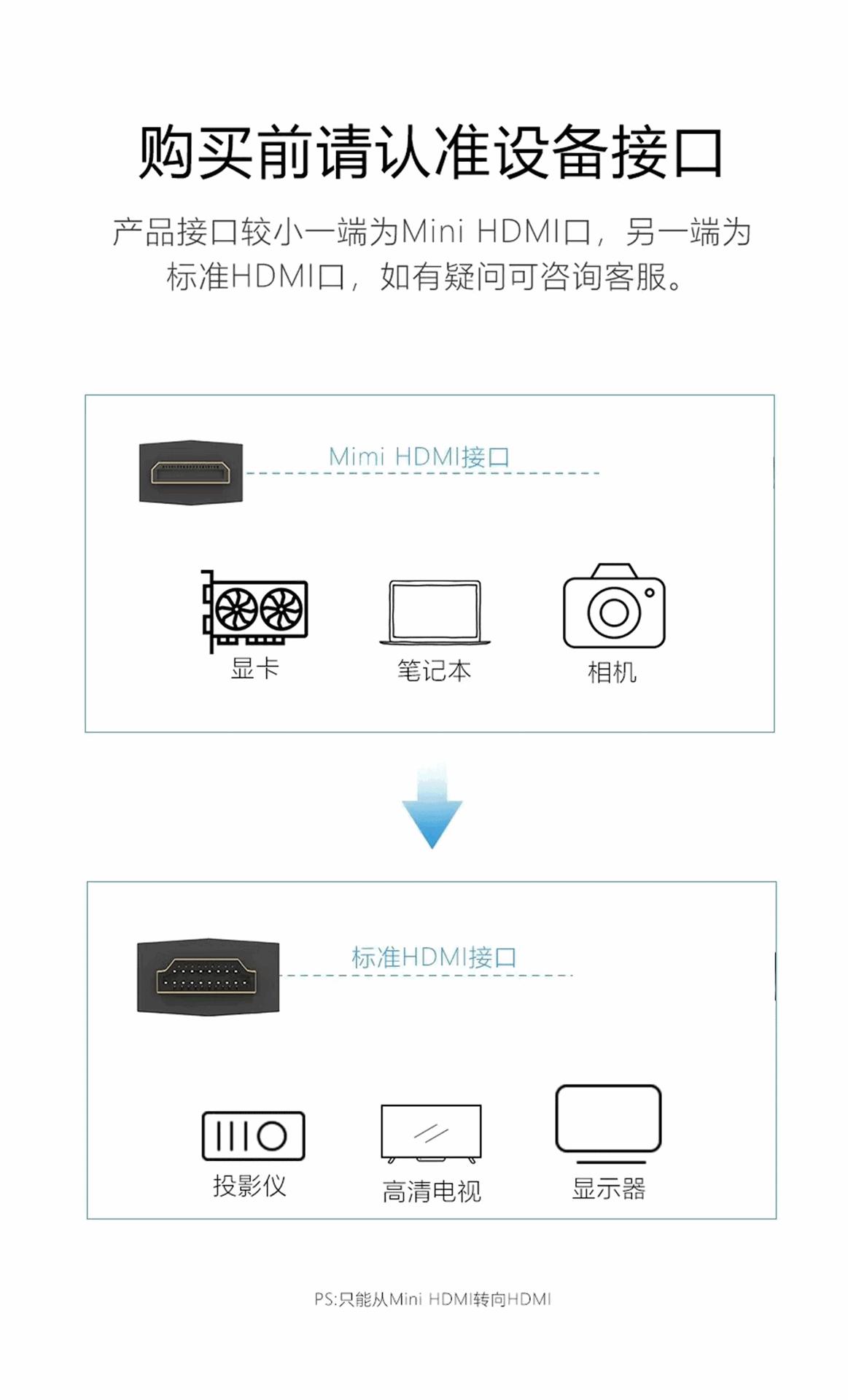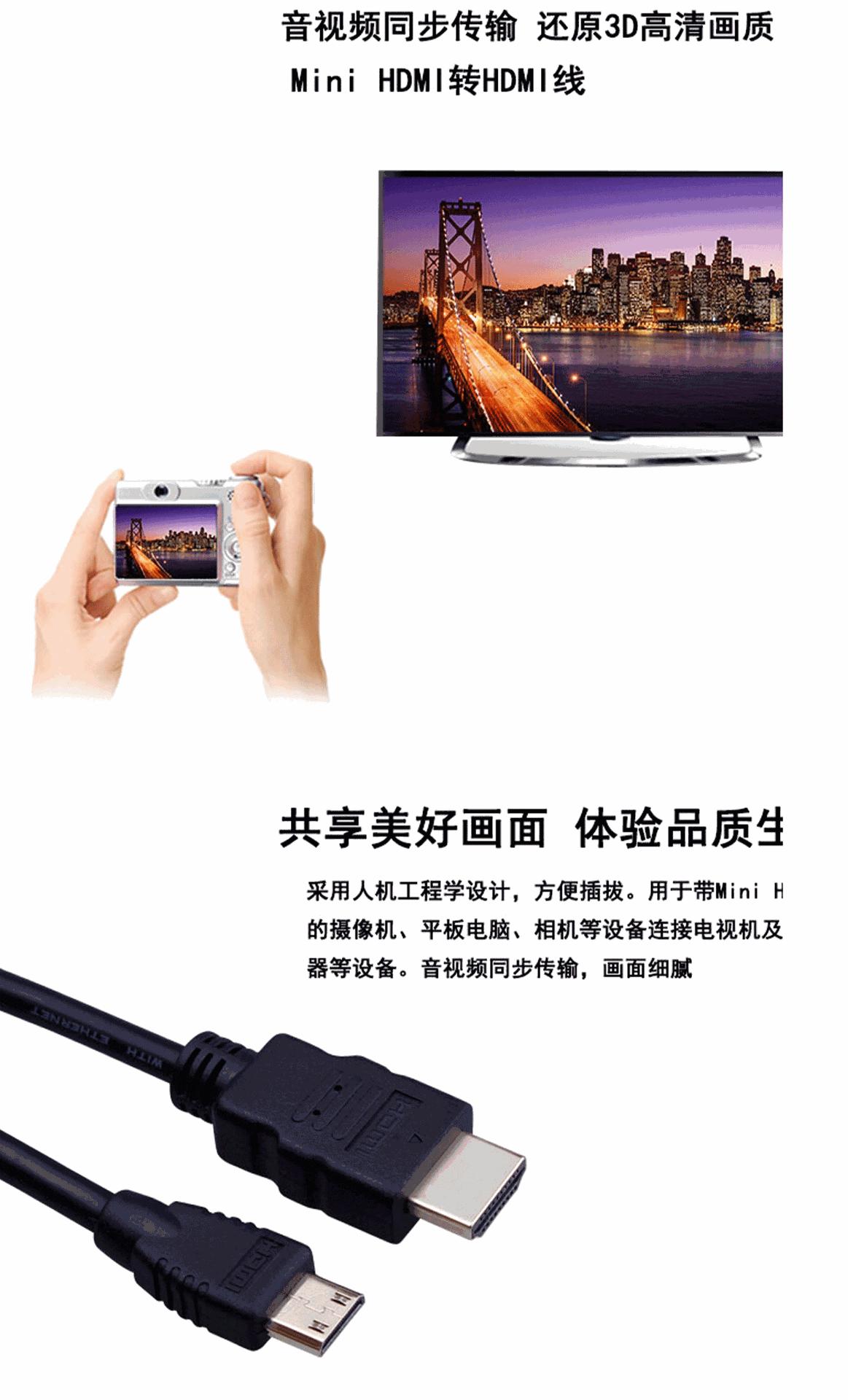 Cable miniHDMI a HDMI HD para teléfono móvil, tableta, computadora, línea de video, mini macho a macho