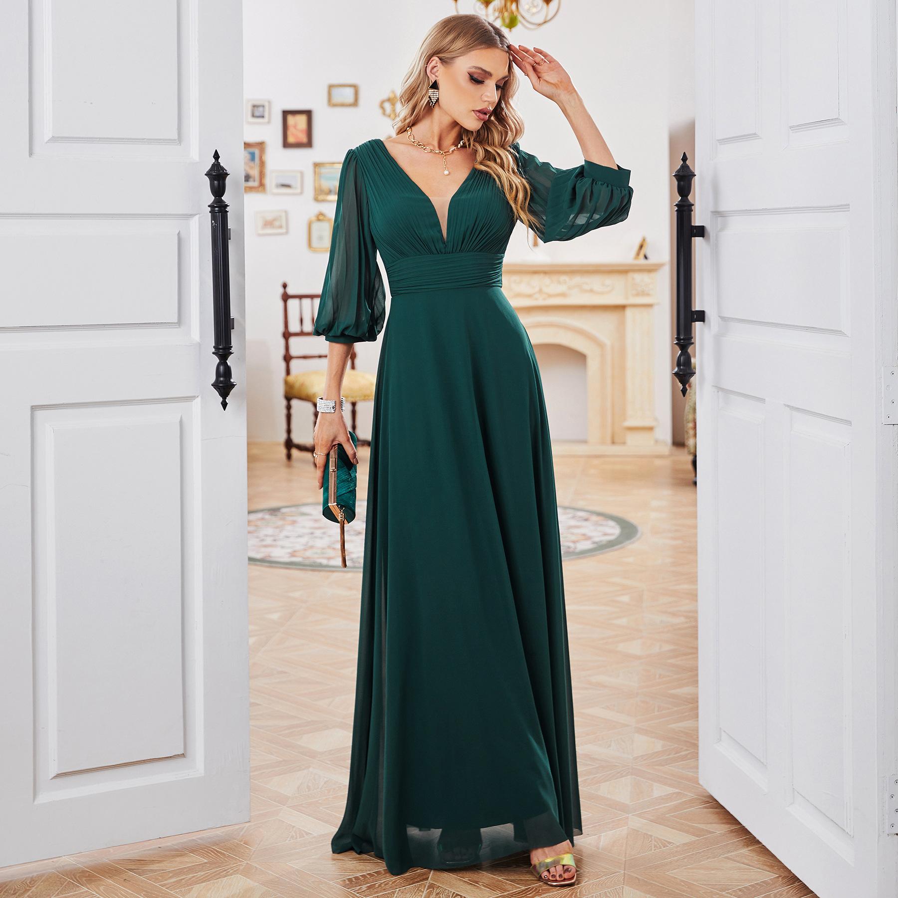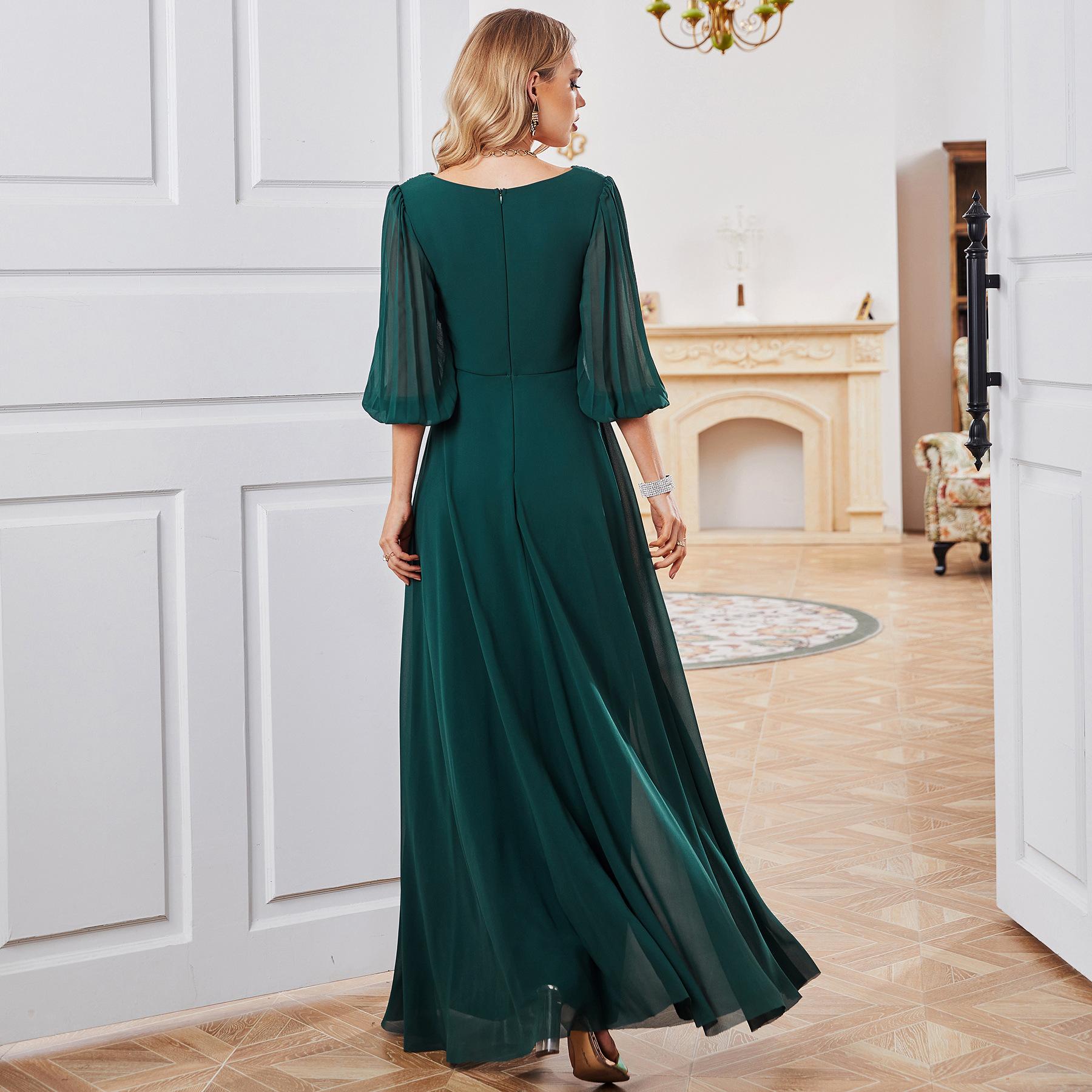 Vestido de otoño y verano para mujer, vestido suelto y entallado para dama de honor, vestido de fiesta diario de noche, entrega transfronteriza de Amazon, chifón de una pieza