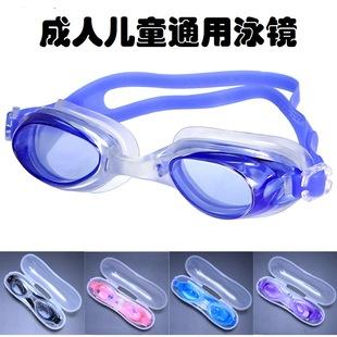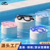 Gafas de natación en caja HD impermeables y antivaho, gafas de natación para niños con marco pequeño, espejo galvanizado con tapones para los oídos, gafas de natación con luz plana, venta al por mayor