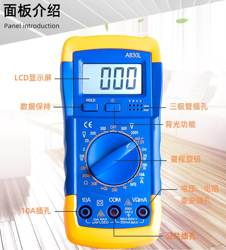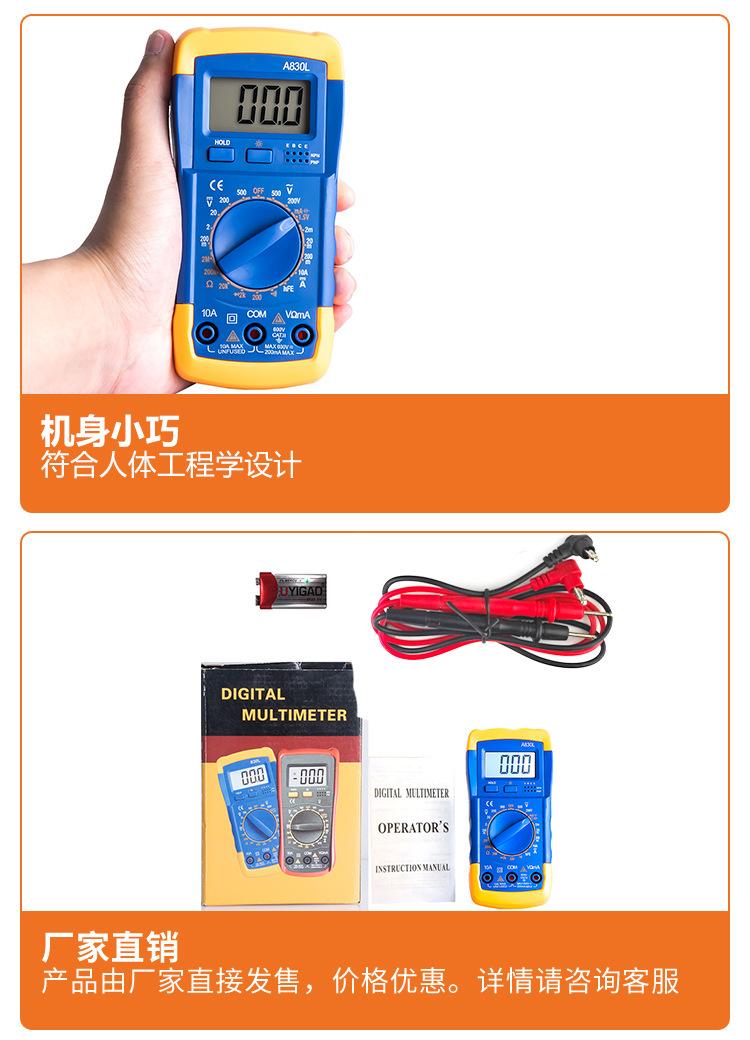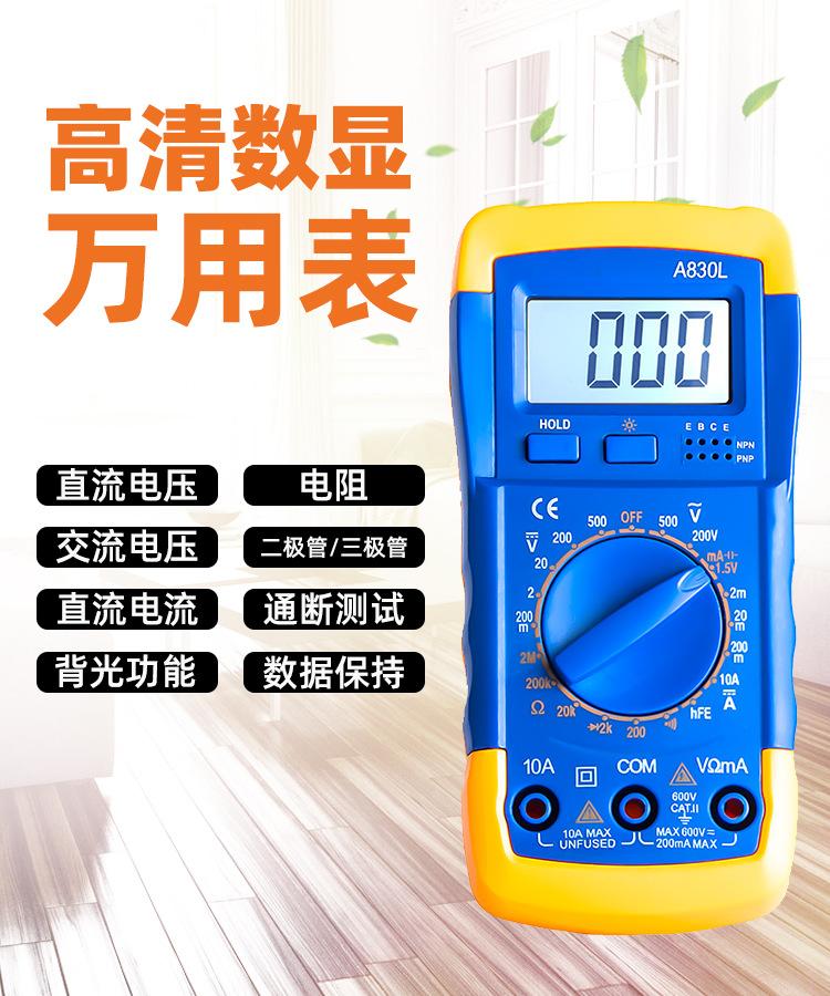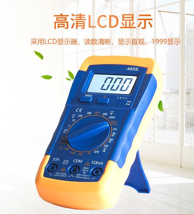 Compra Multímetro de Pantalla Digital A830L Portátil para Estudiantes Mantenimiento del Hogar Medidor Multiusos Digital Anti-Quemaduras y Anti-Caídas Portátil al por mayor en Joom.pro