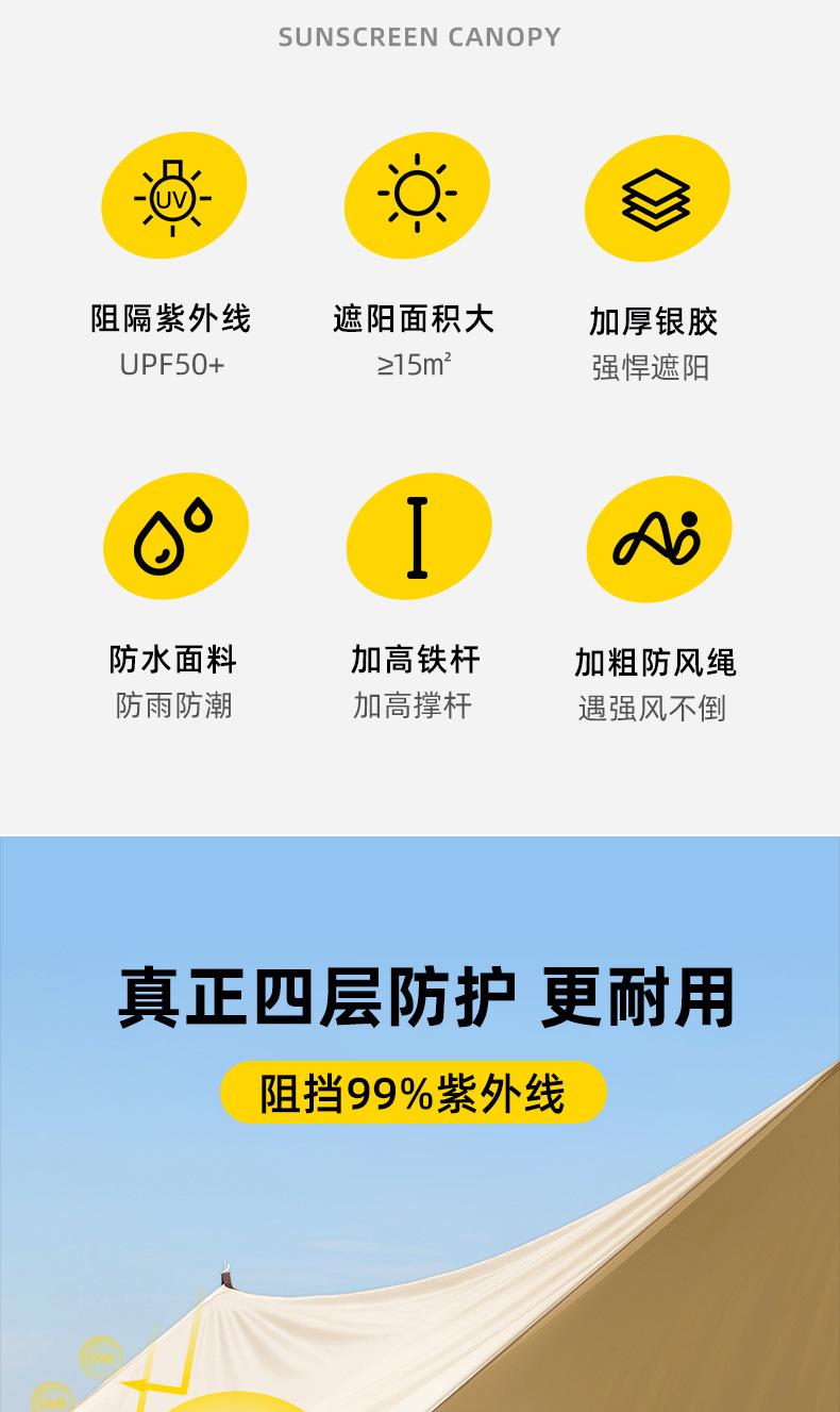 Tienda de campaña con dosel para exteriores, parasol, protector solar, recubierto de plata, para picnic, cuadrada, cortina grande, resistente a la lluvia, refugio, suministros y equipo.