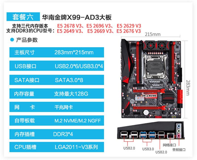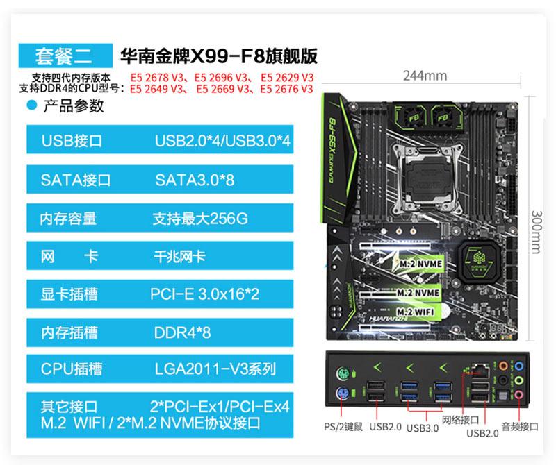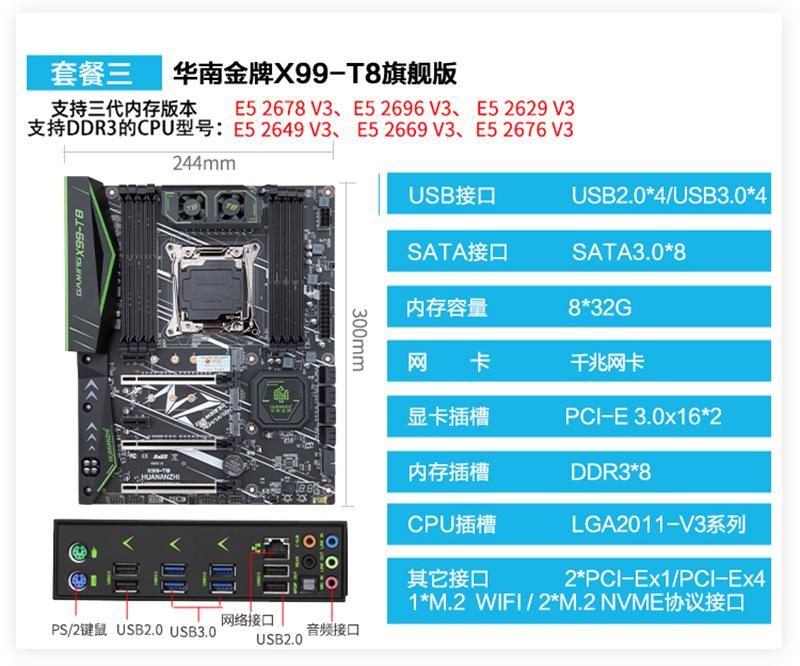 Placa base X99 Gold del sur de China, compatible con CPU de estudio multi-abierto, diseño bidireccional, computadora de escritorio e5 2678v3