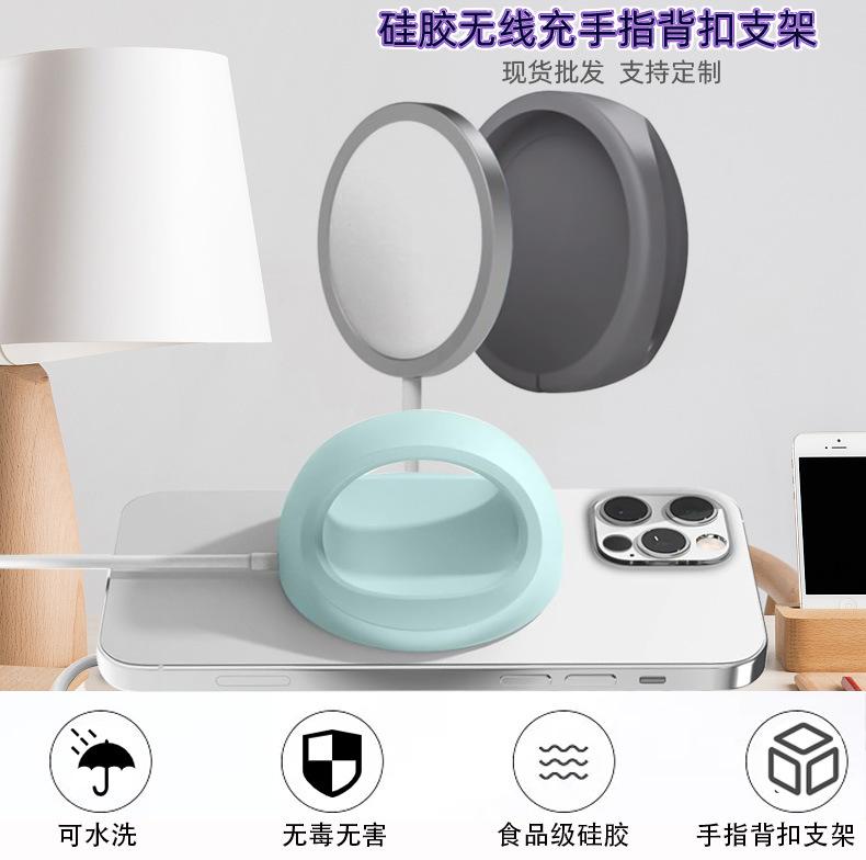 Hecho de material de silicona, es duradero y resistente a las caídas, y puede proteger eficazmente su cargador inalámbrico de arañazos y desgaste. También se puede usar como soporte para teléfono móvil.