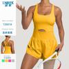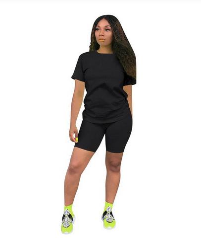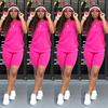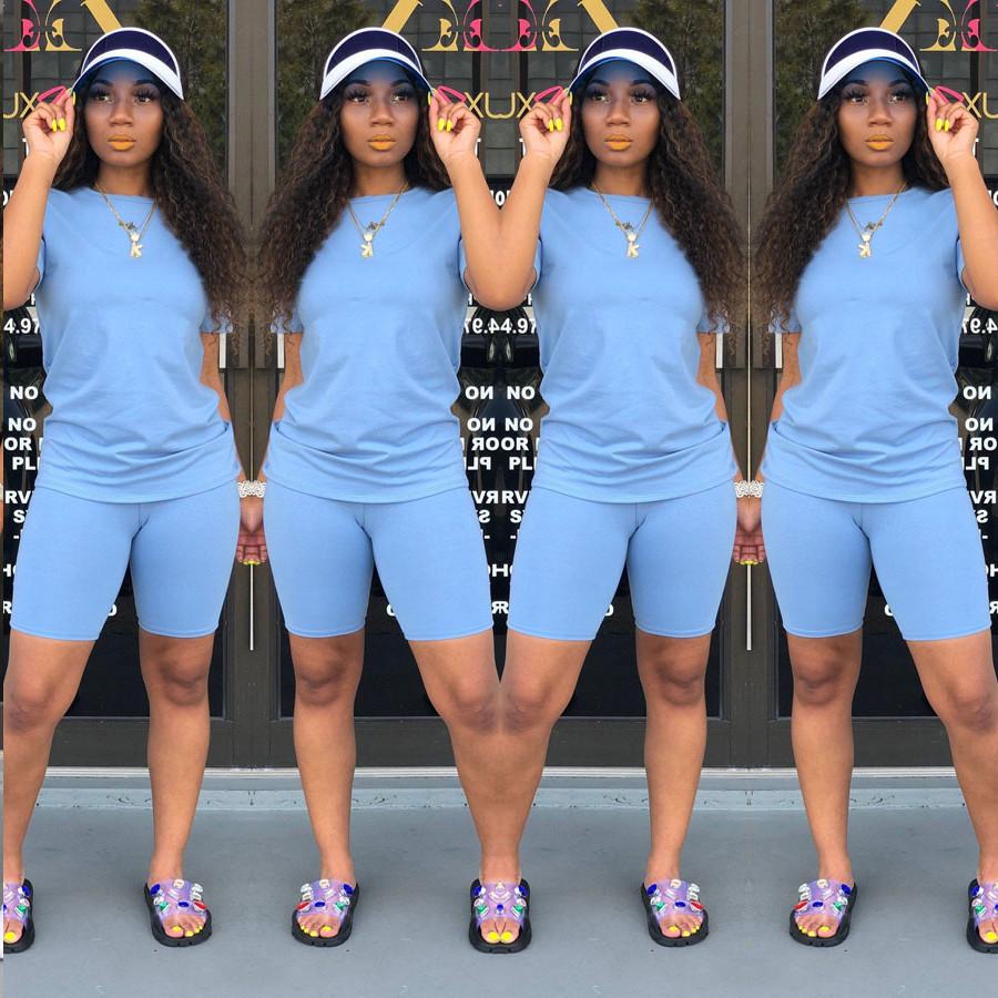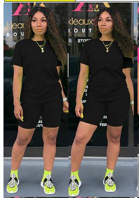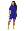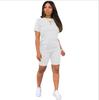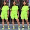 2021 Otoño e Invierno Nuevo Ebay Amazon Moda Cuello Redondo Color Puro Manga Corta Top + Shorts Traje Deportivo