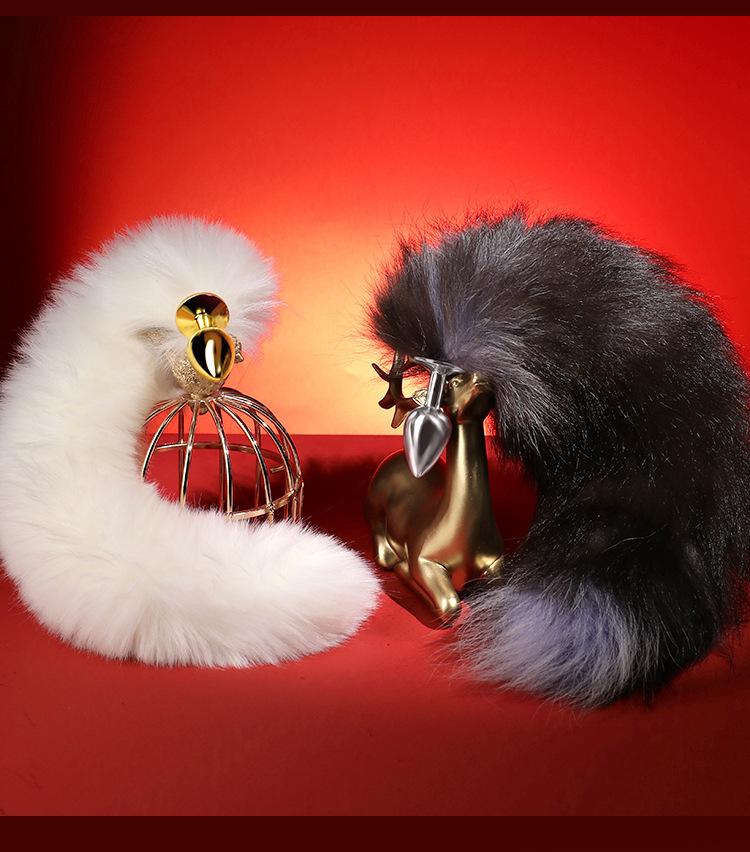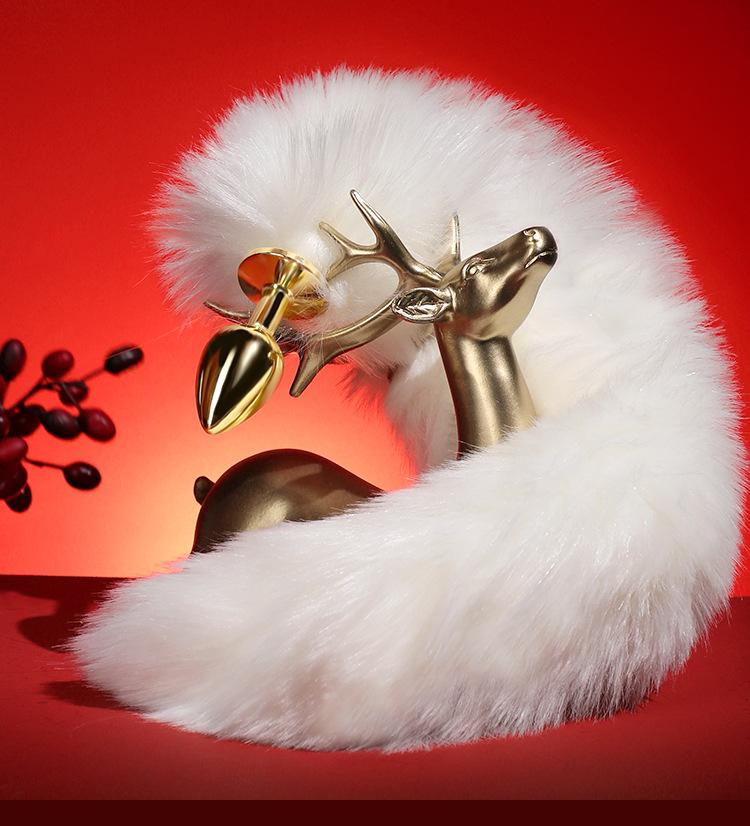 Nombre del producto: Plug anal chapado en oro con cola de zorro blanco