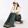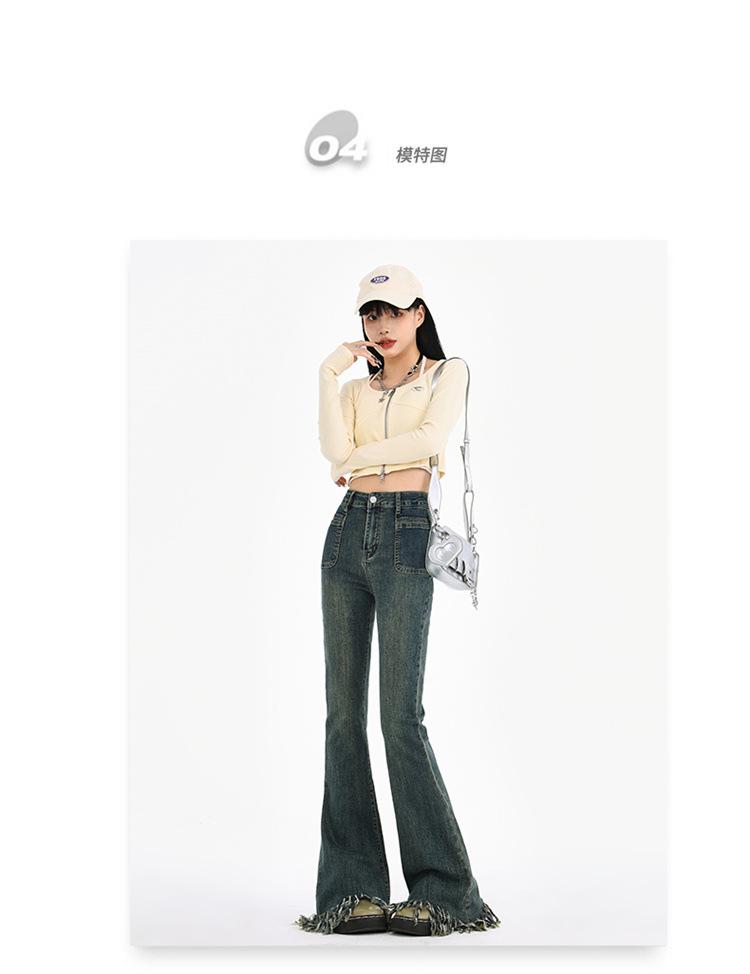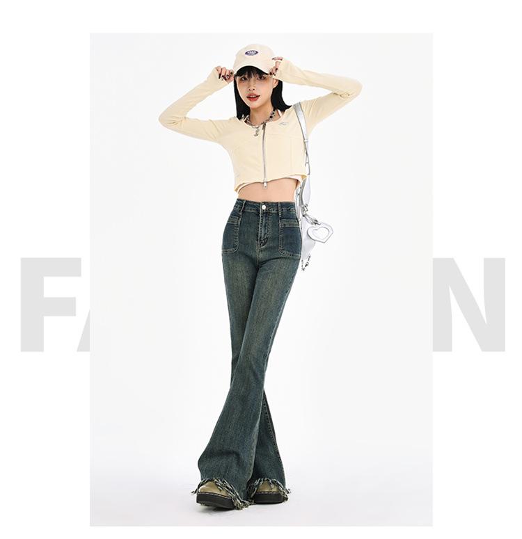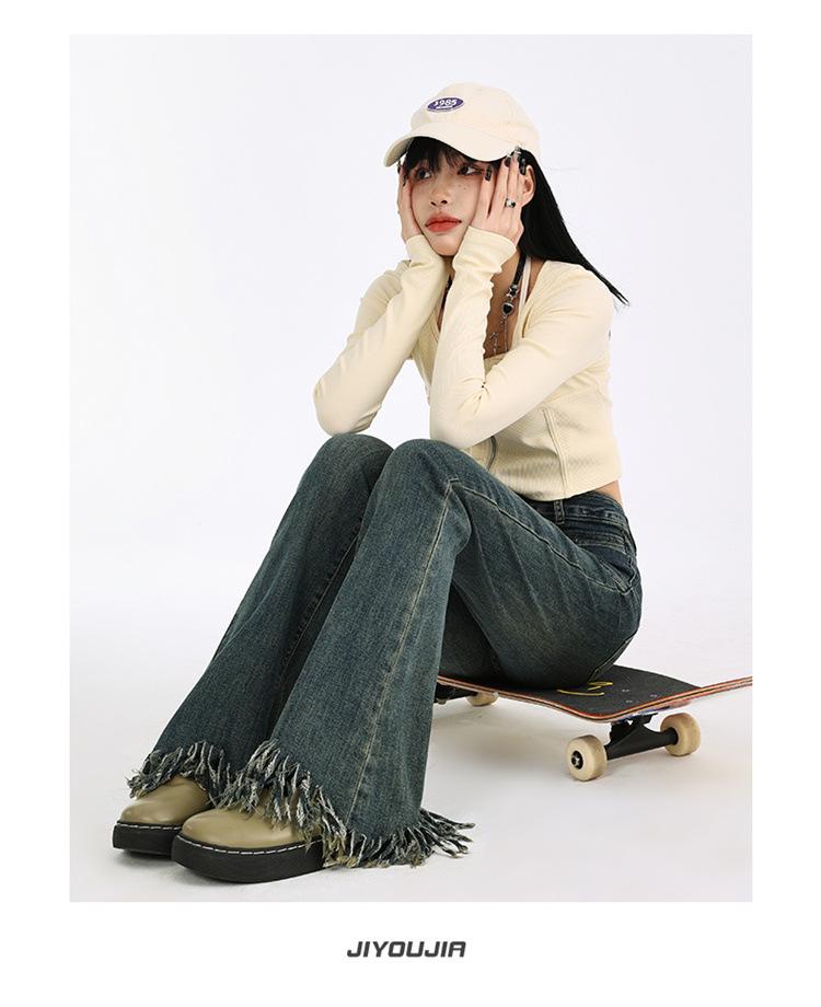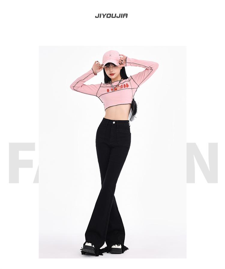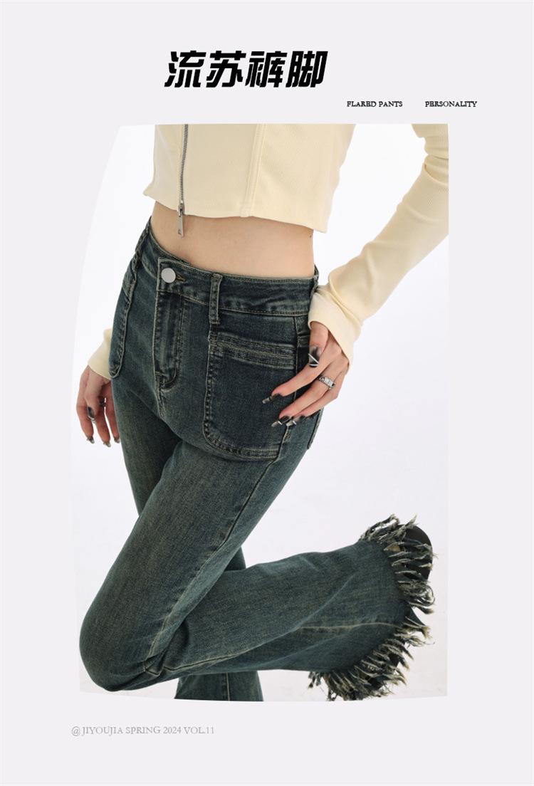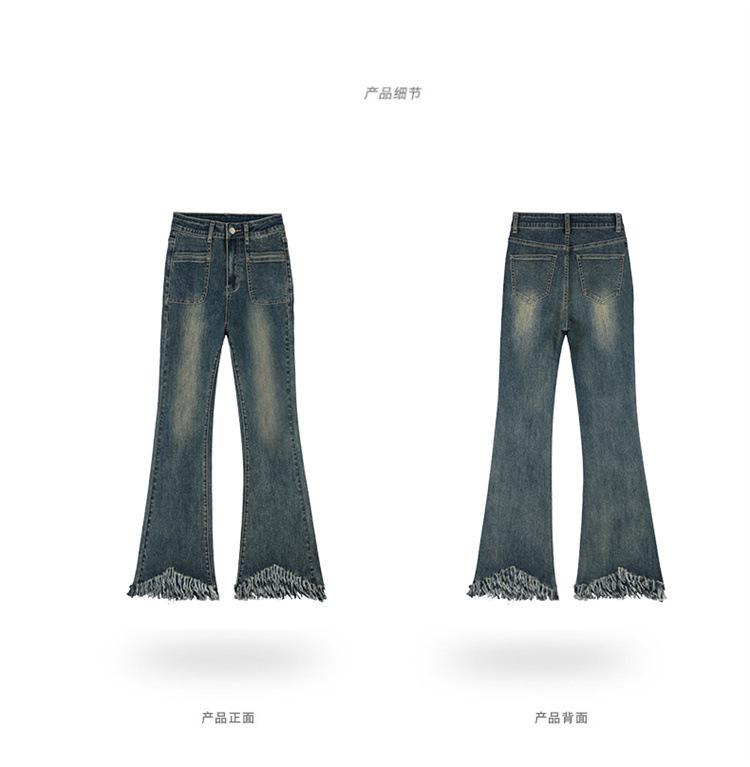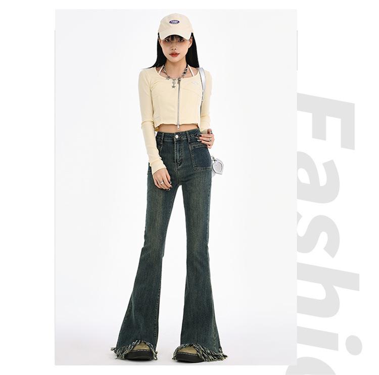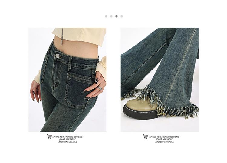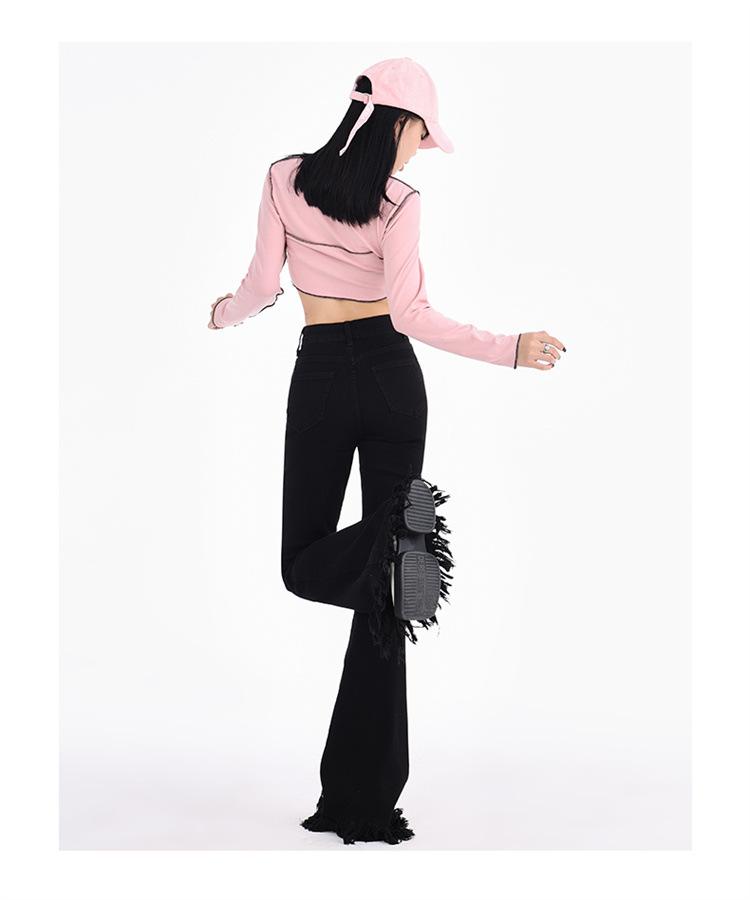 Jeans Negros Microacampanados para Mujer Nuevo Diseño de Borlas Cintura Alta Adelgazantes Pantalones Trompeta para Otoño 2024
