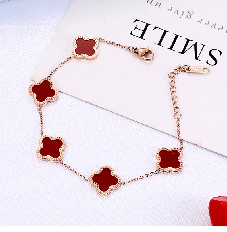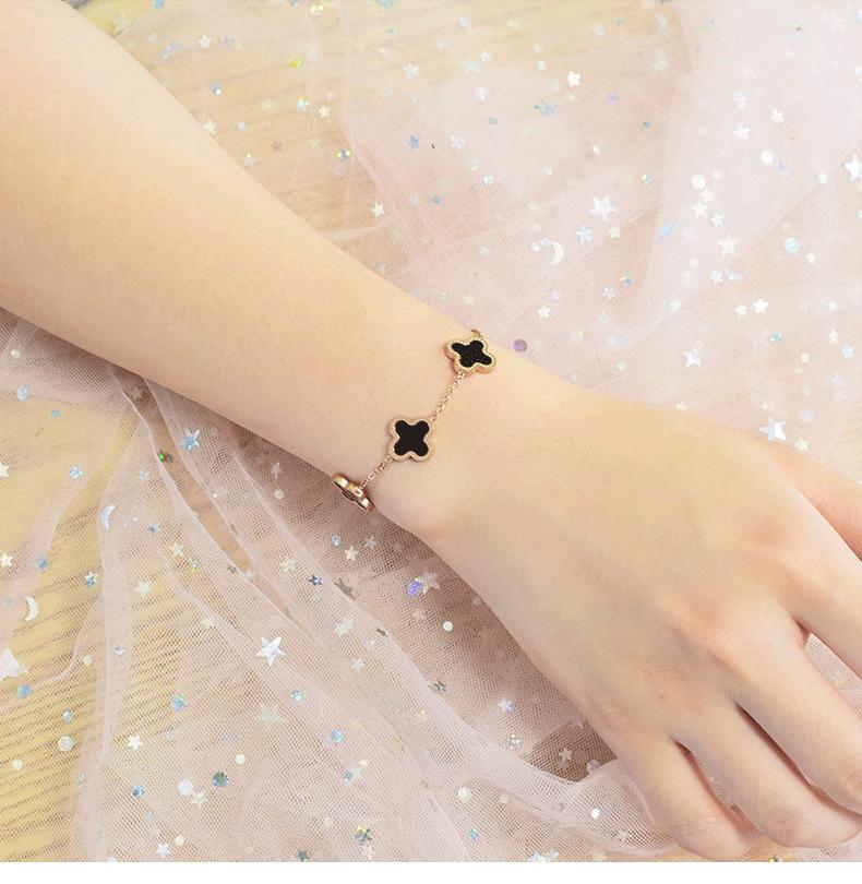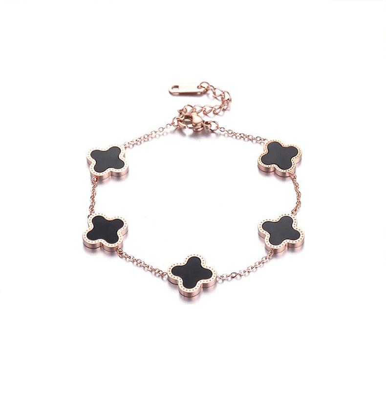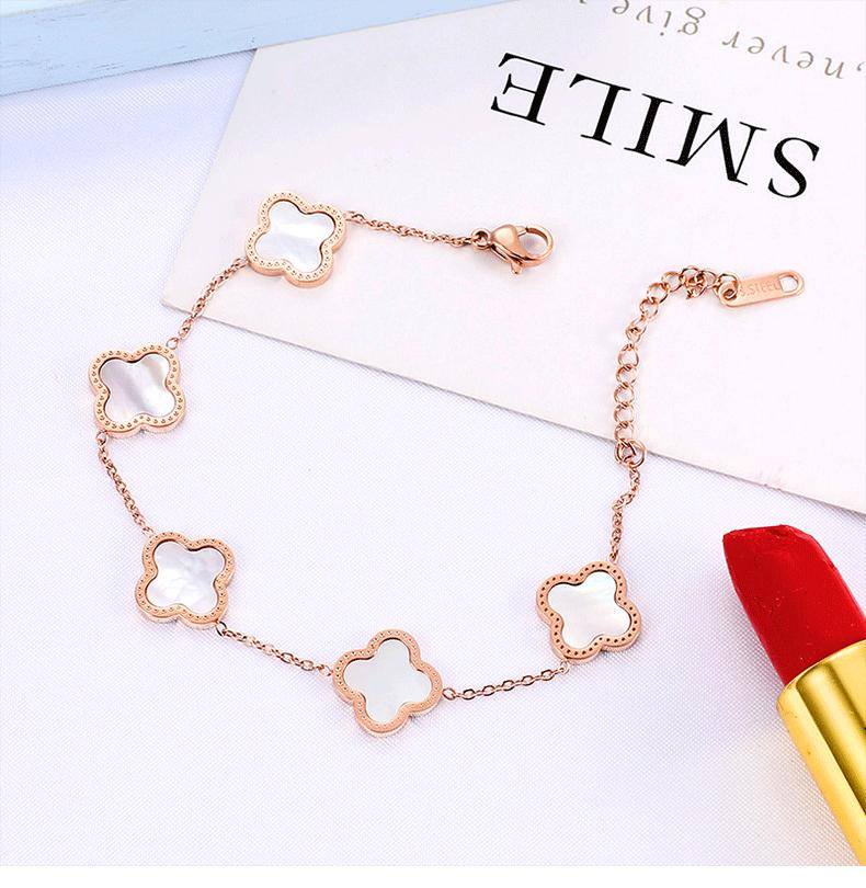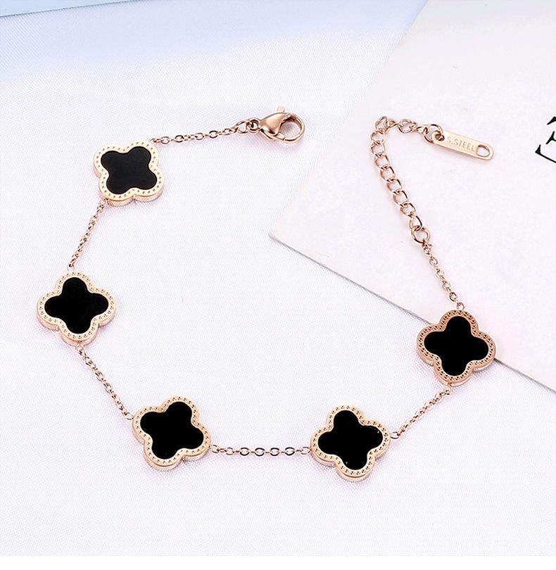 Pulsera de acero de titanio de trébol estilo coreano para mujer, simple, oro rosa de 18K, personalidad temperamental que no se desvanece, diseño de nicho estilo ins