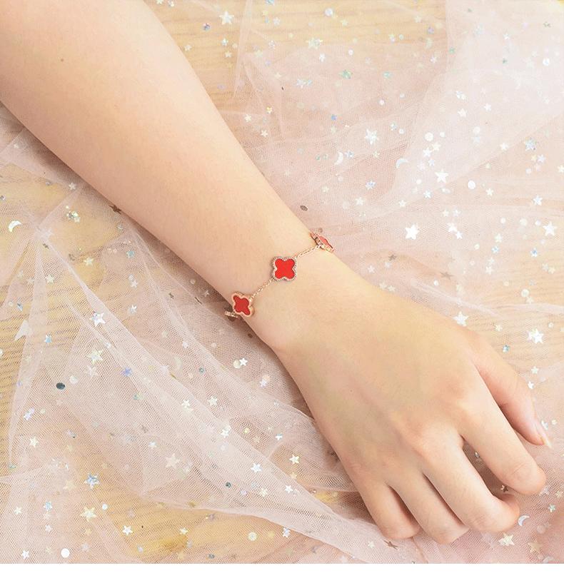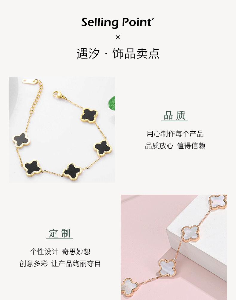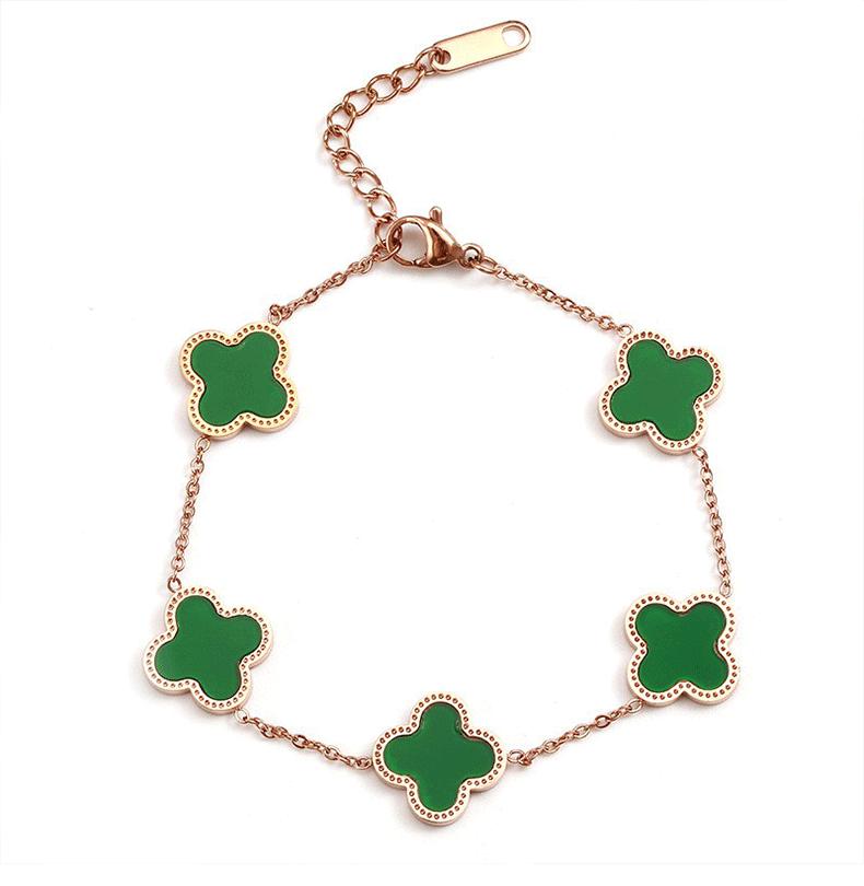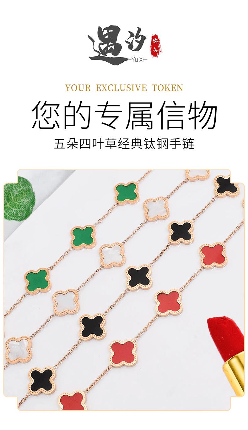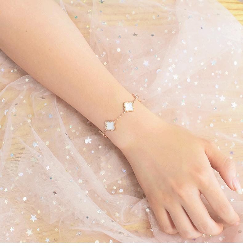Pulsera de acero de titanio de trébol estilo coreano para mujer, simple, oro rosa de 18K, personalidad temperamental que no se desvanece, diseño de nicho estilo ins