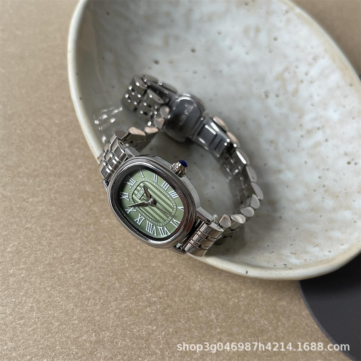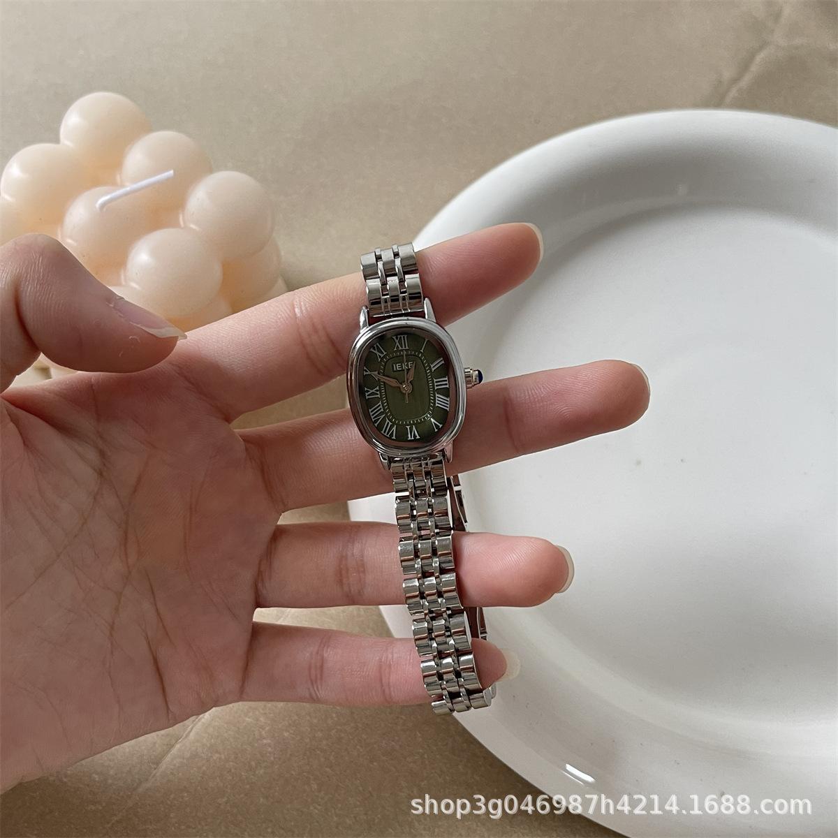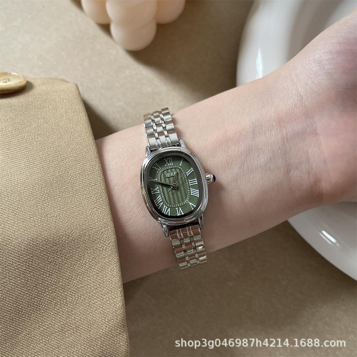 Reloj IEKE con correa de acero ovalada, estilo retro artístico, pequeño, verde, para mujer, con temperamento simple, reloj de cuarzo para mujer