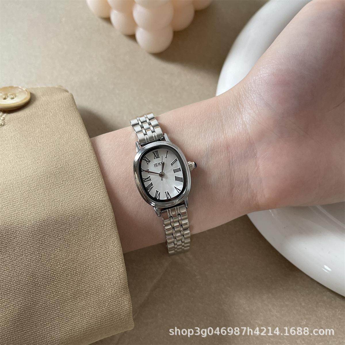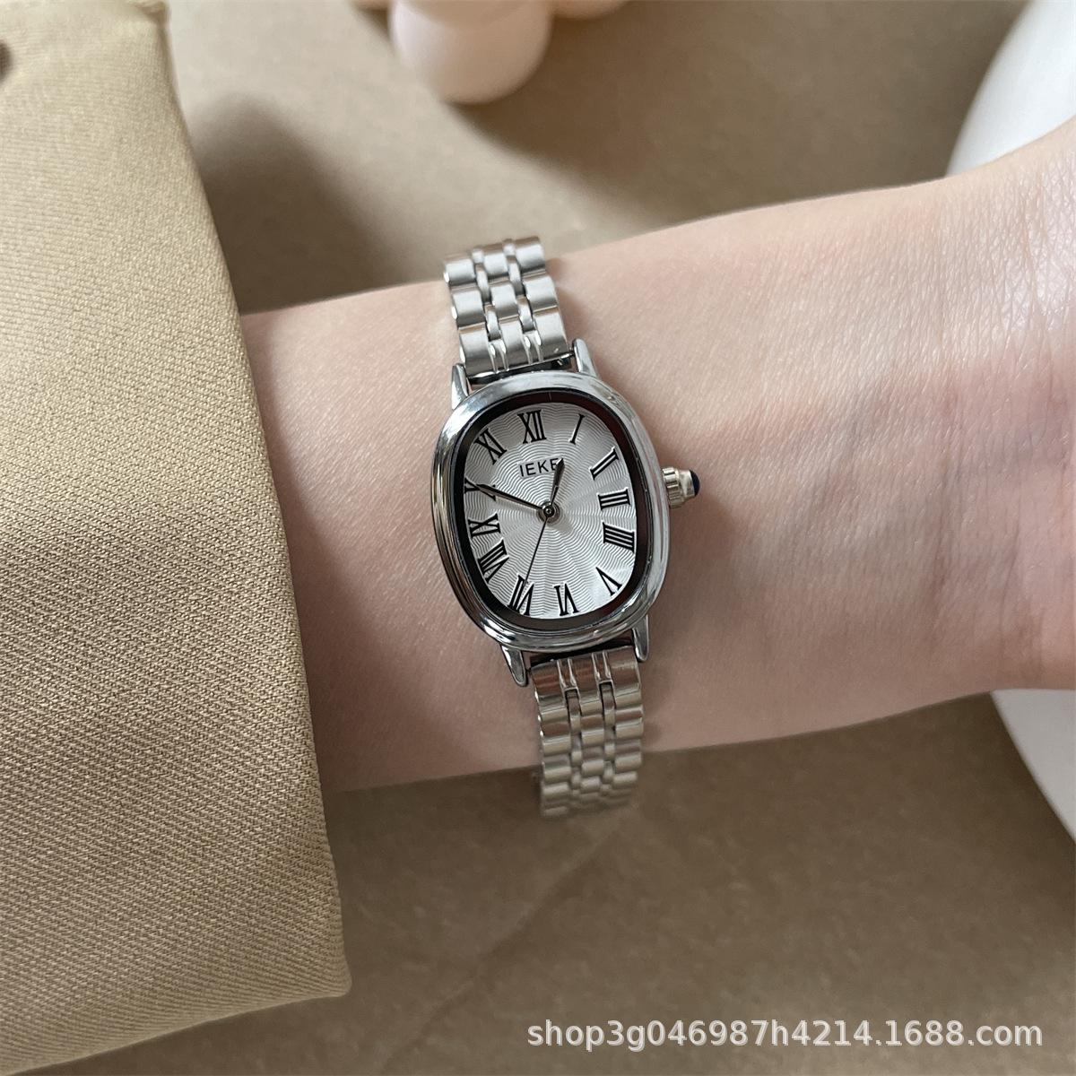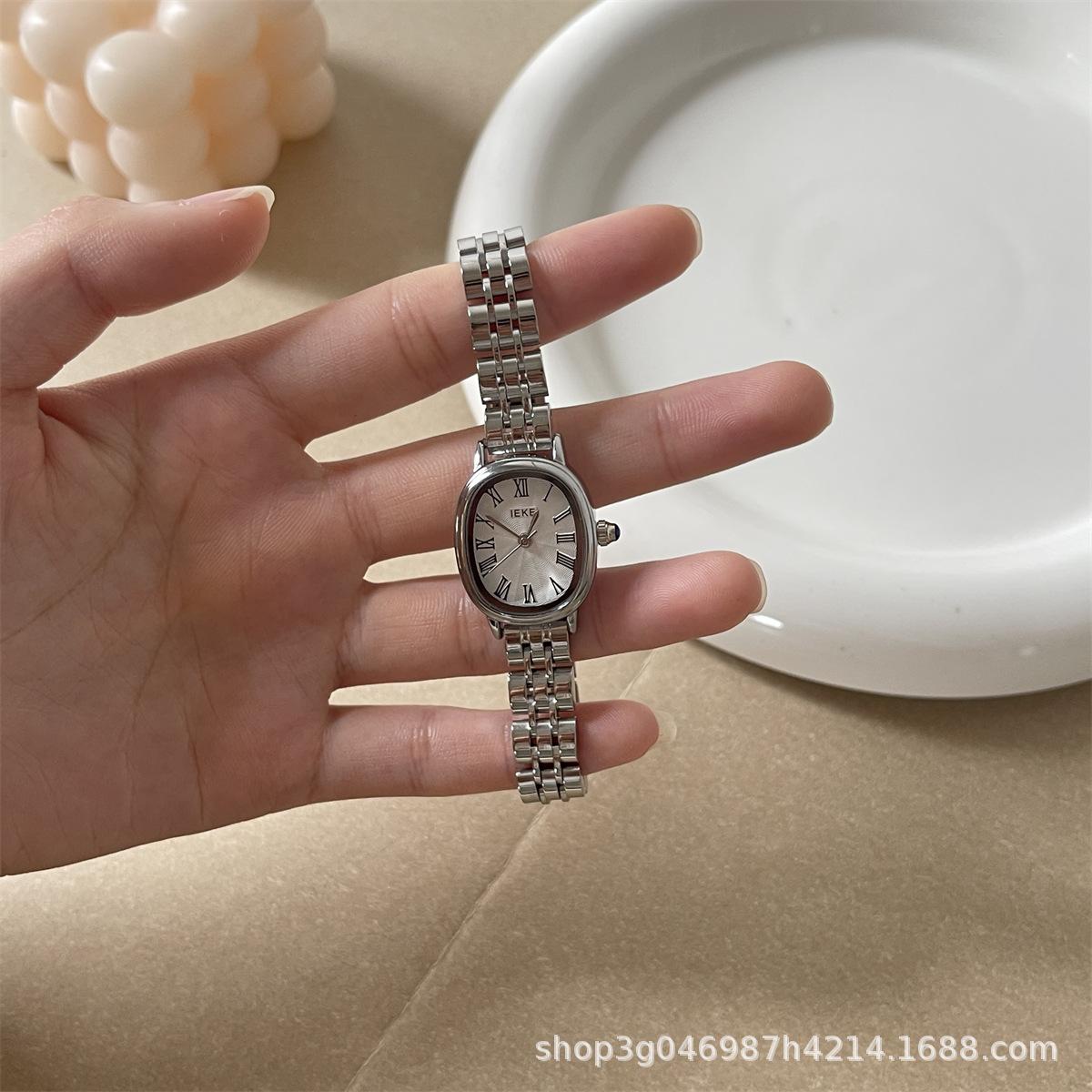 Reloj IEKE con correa de acero ovalada, estilo retro artístico, pequeño, verde, para mujer, con temperamento simple, reloj de cuarzo para mujer