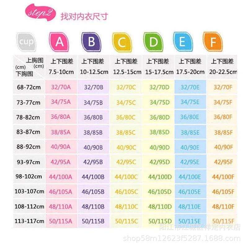 75B 34, 80B 36, 85B 38, 90B 40, 95B 42