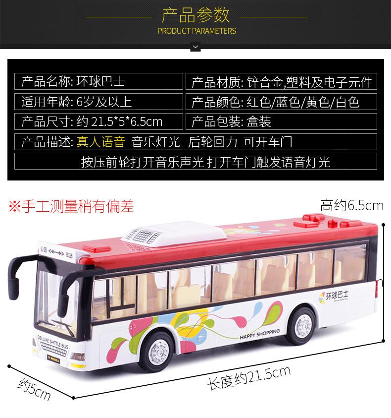 [En caja] Autobús de viaje Eagle Global, modelo de coche de aleación con sonido y luz, puerta abierta, juguete para niños 6011B