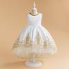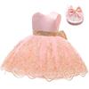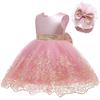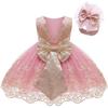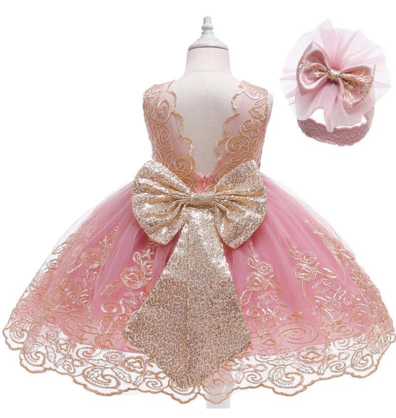 Ropa Nueva Europea y Americana para Niños Vestido de Encaje de Malla con Costuras Lazo Falda de Princesa para Niña Vestido Ponte