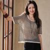 Camiseta de Manga Corta de Seda de Morera para Mujer 2025 Primavera y Verano Nuevo Estilo Nacional Estampado Chinoiserie Holgada Transpirable Top de Seda Satinada