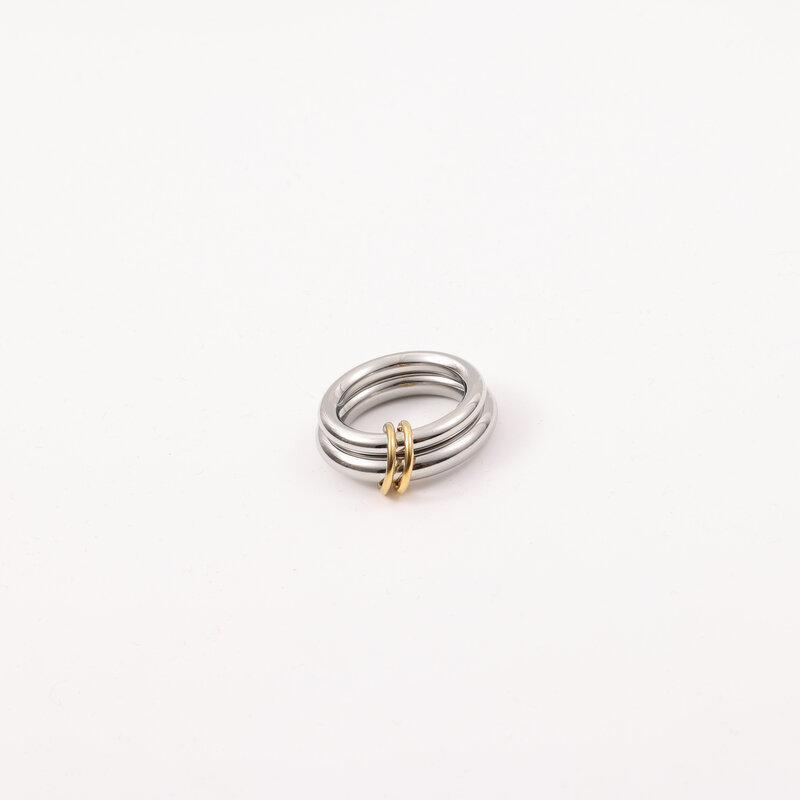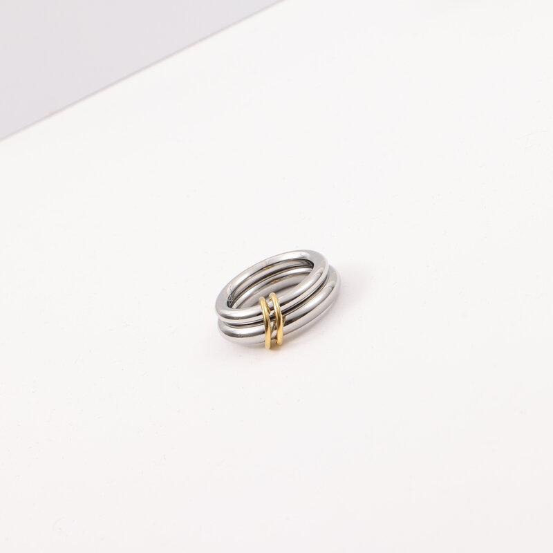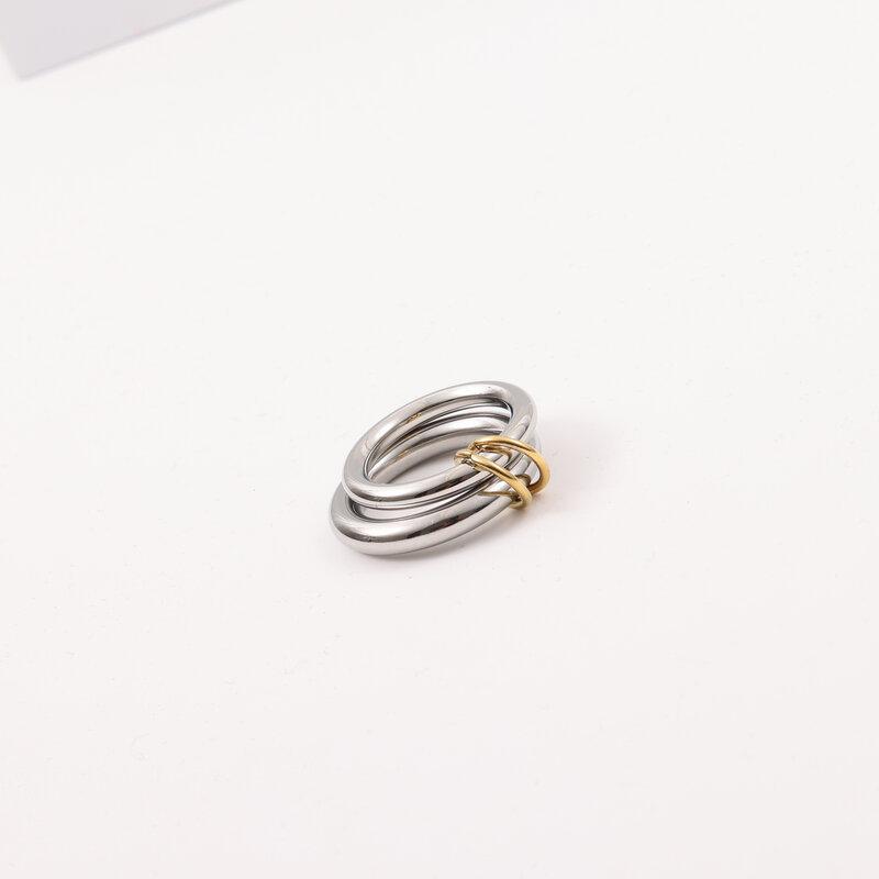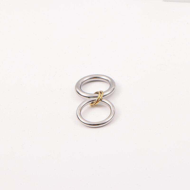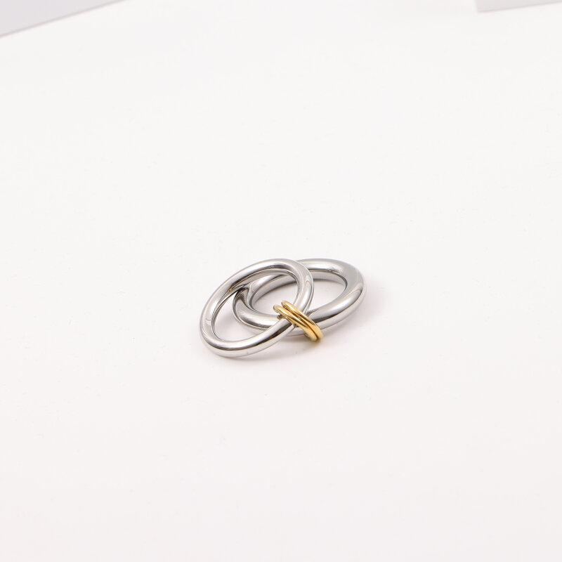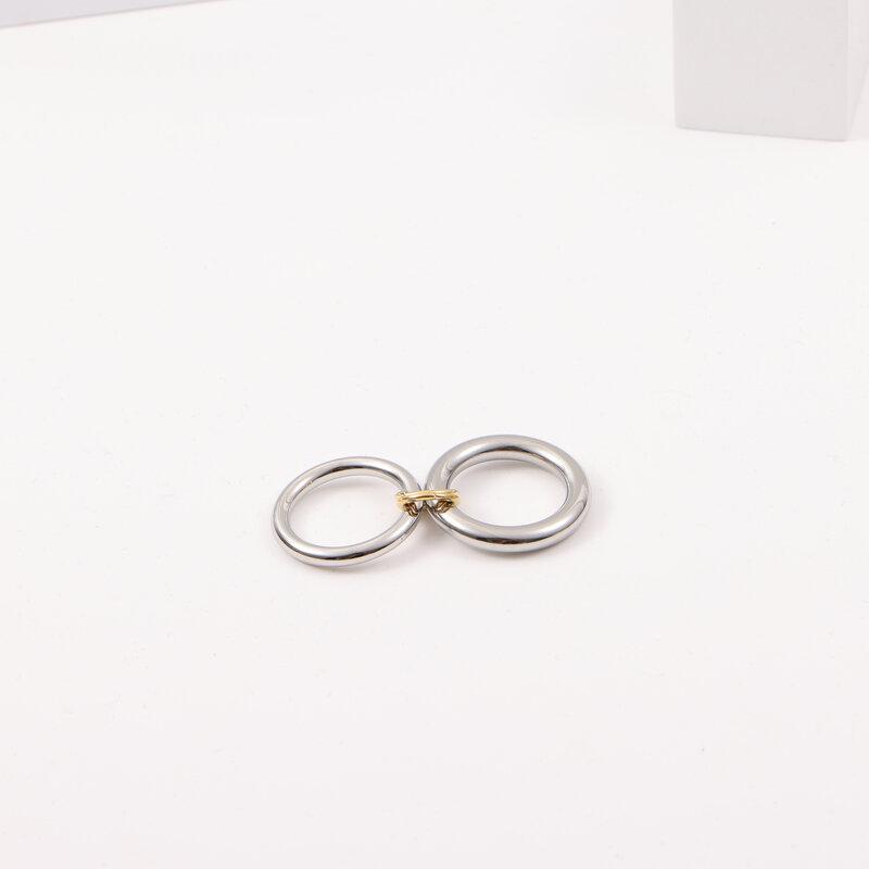 Anillo de doble aro conector anillo acero titanio chapado oro 18K anillo anillo