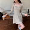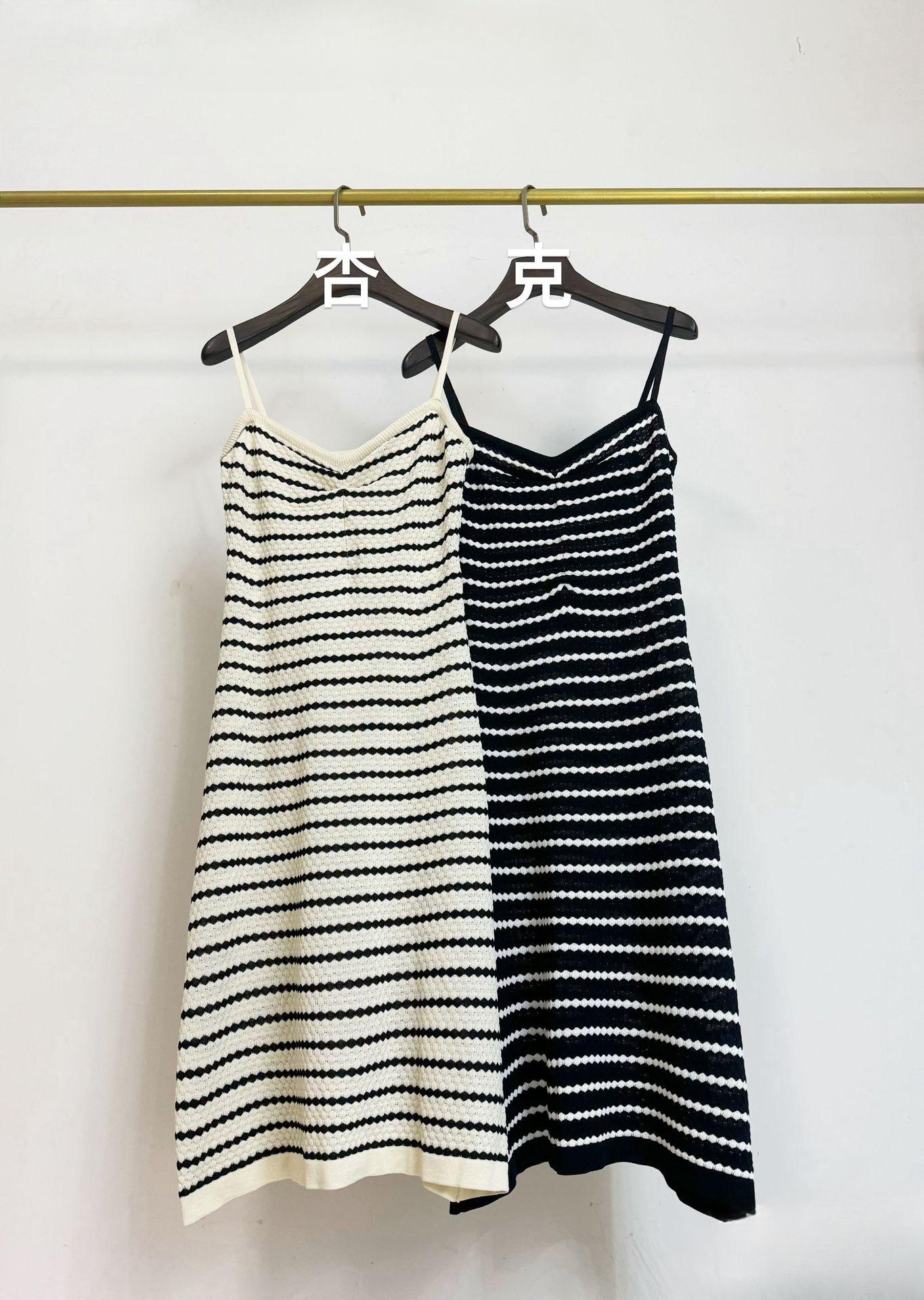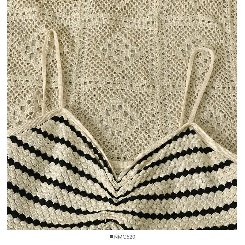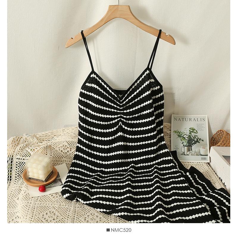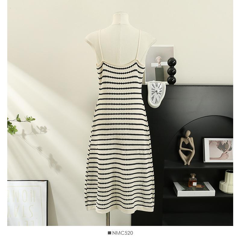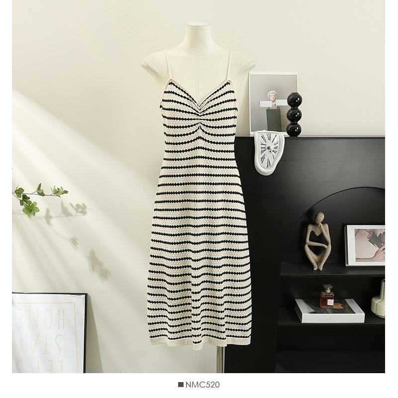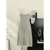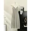 Vestido de tirantes de punto a rayas de colores contrastantes de estilo coreano para mujer, nuevo vestido largo ajustado elegante de estilo francés