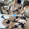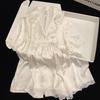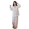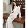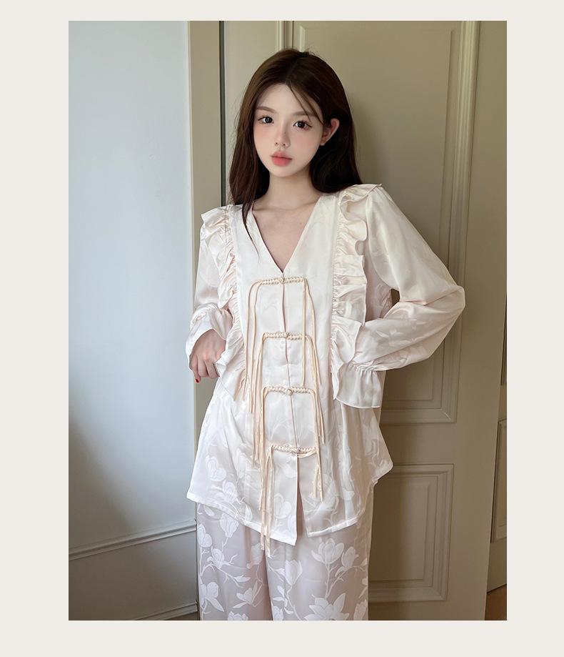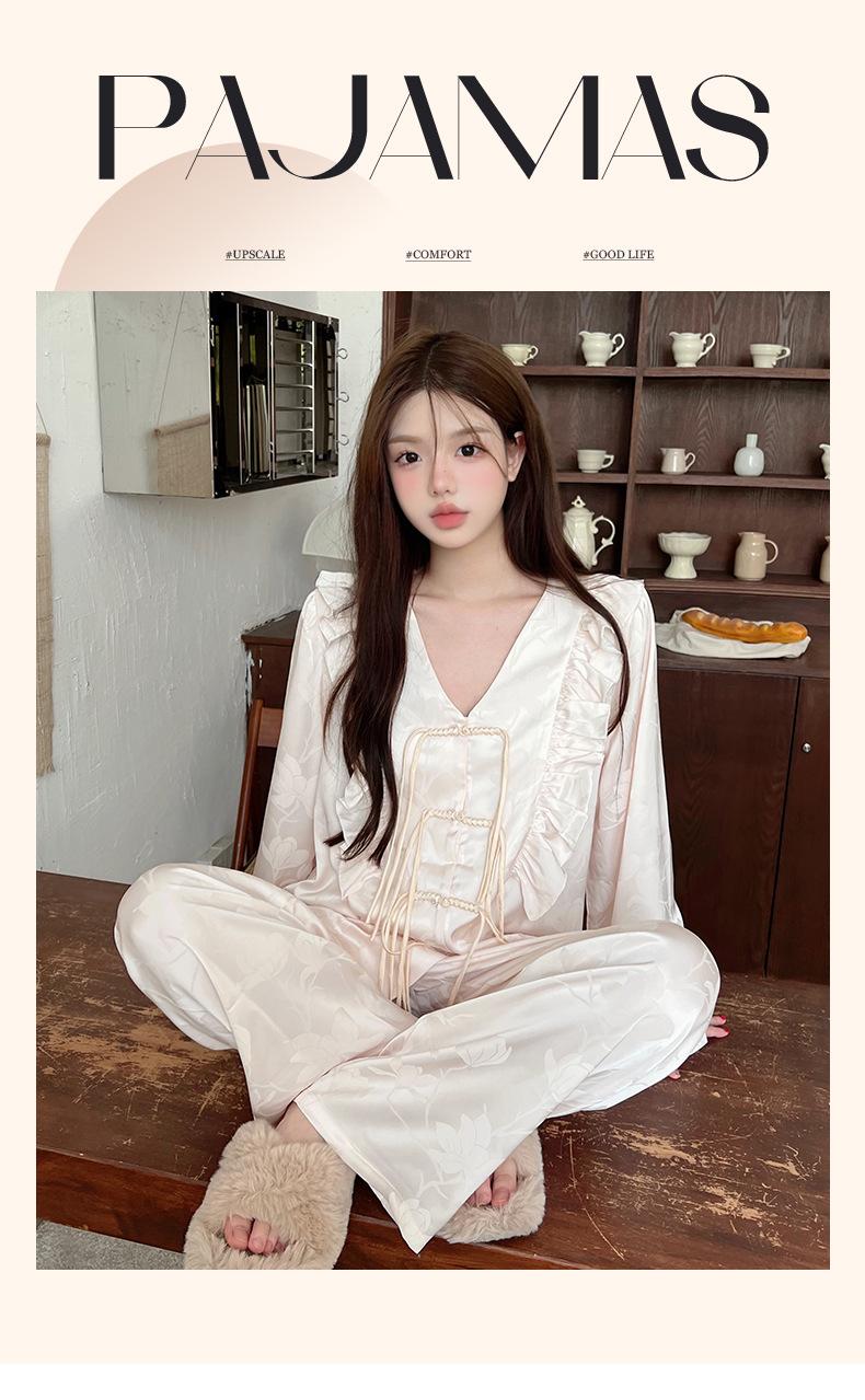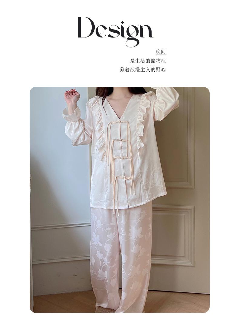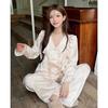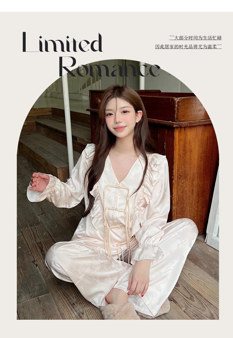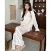 Pijama de Encaje Estilo Chino Nuevo para Mujer Primavera y Otoño Manga Larga Seda Helada Cómodo Traje de Ropa para el Hogar