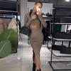 2024 verano nuevo europeo y americano Amazon transfronterizo para mujer sexy hueco chica caliente ceñido a la cadera vestido con abertura