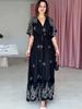 Vestido Estampado Nuevo Europeo y Americano de Moda Primavera-Verano Transfronterizo 2025 Sexy Cuello en V Cintura Suelta Falda Larga