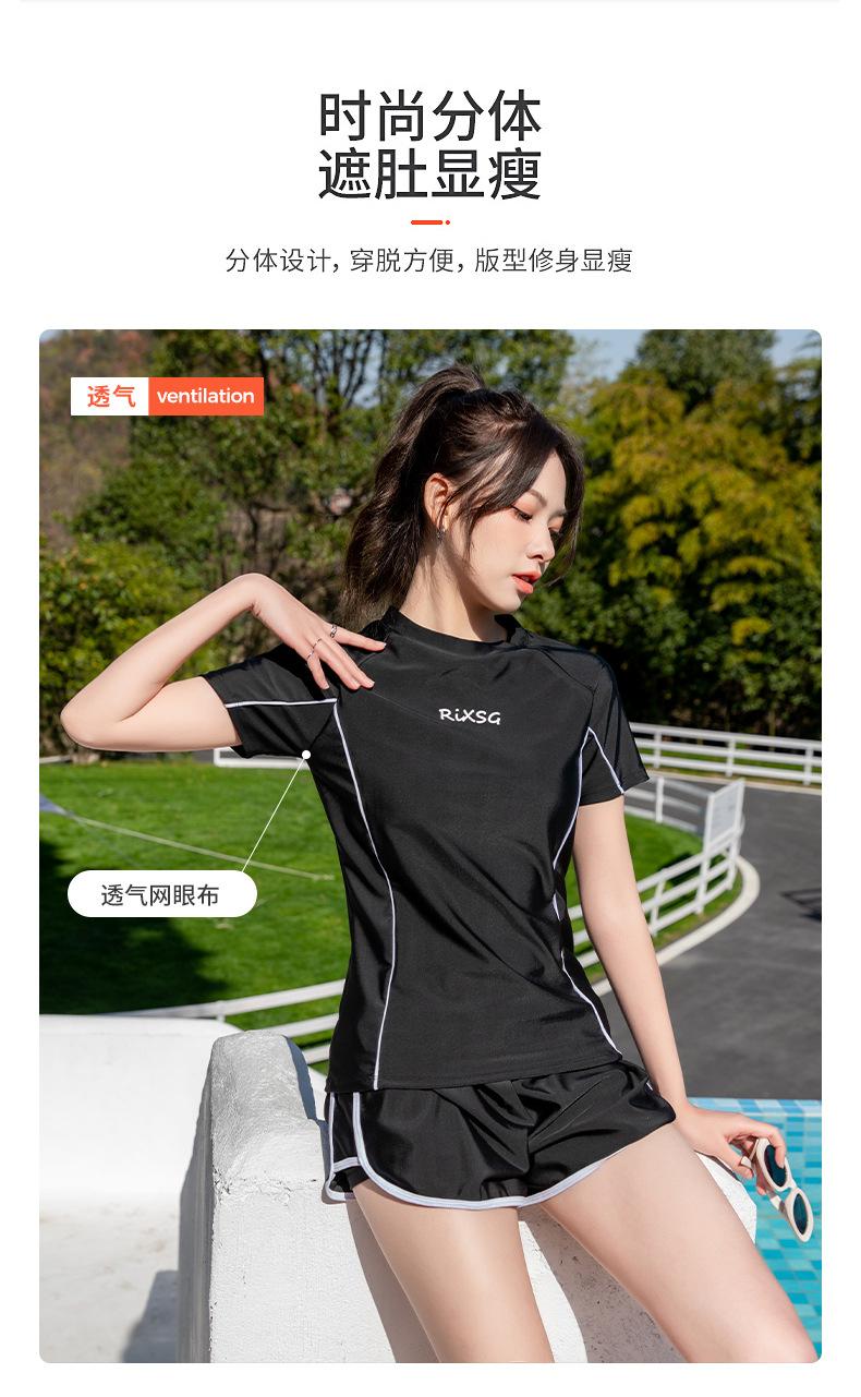Traje de Baño Laughing Shu para Mujer 2022 Nuevo Verano Dividido Conservador Cubre Vientre Look Adelgazante Deportivo Talla Grande Traje para Aguas Termales