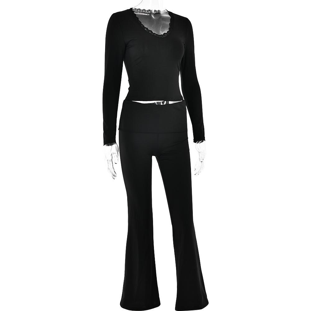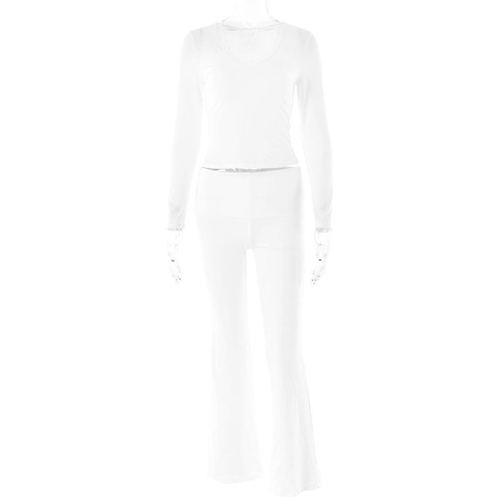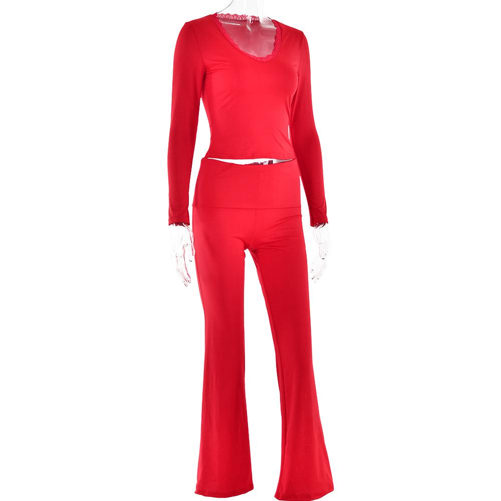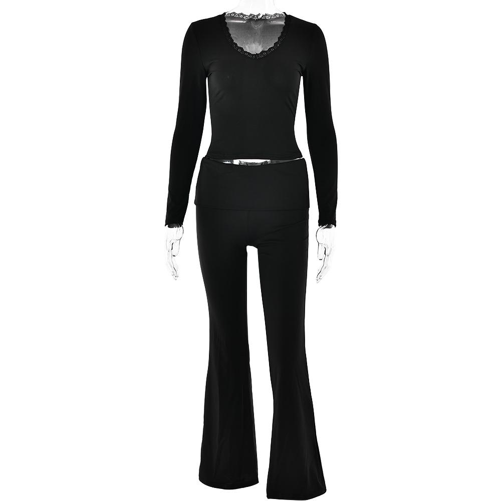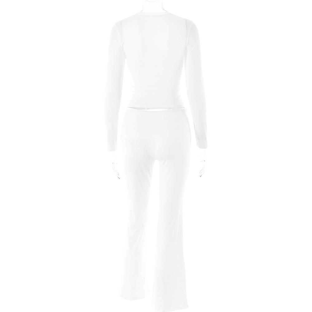 Traje Nuevo Más Vendido de Exportación Europea y Americana 2025 Sexy Slim Color Puro Cuello en V Ombligo Descubierto Pantalones Slim Conjunto de Dos Piezas para Mujer