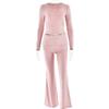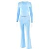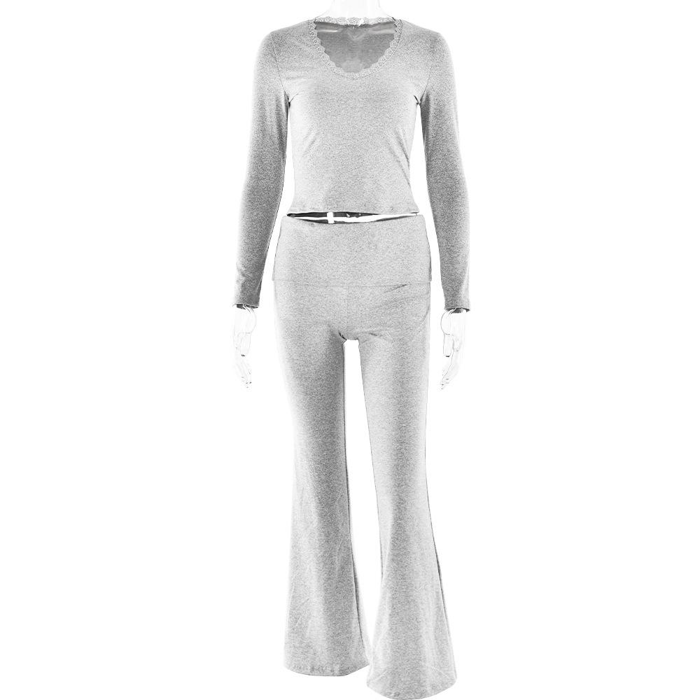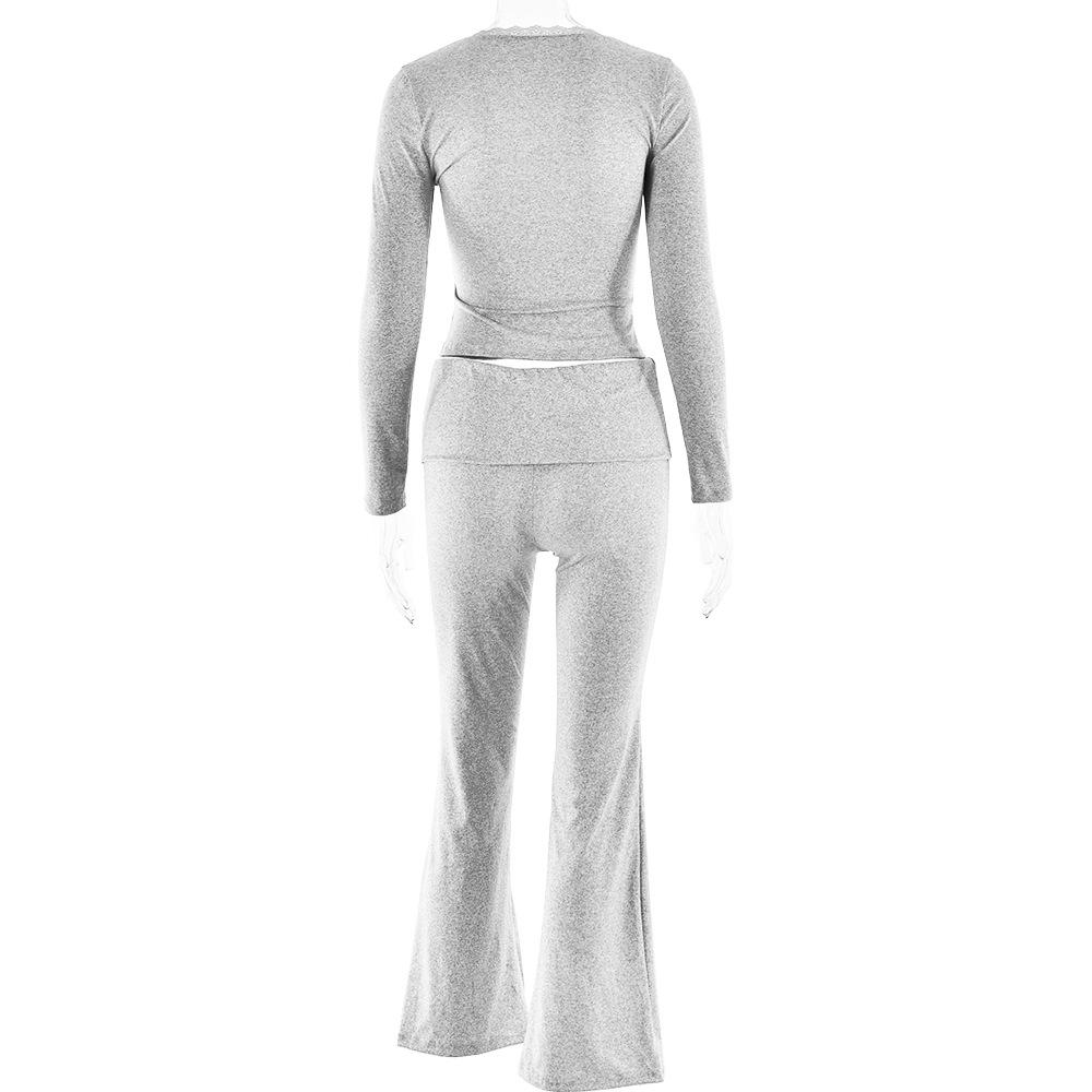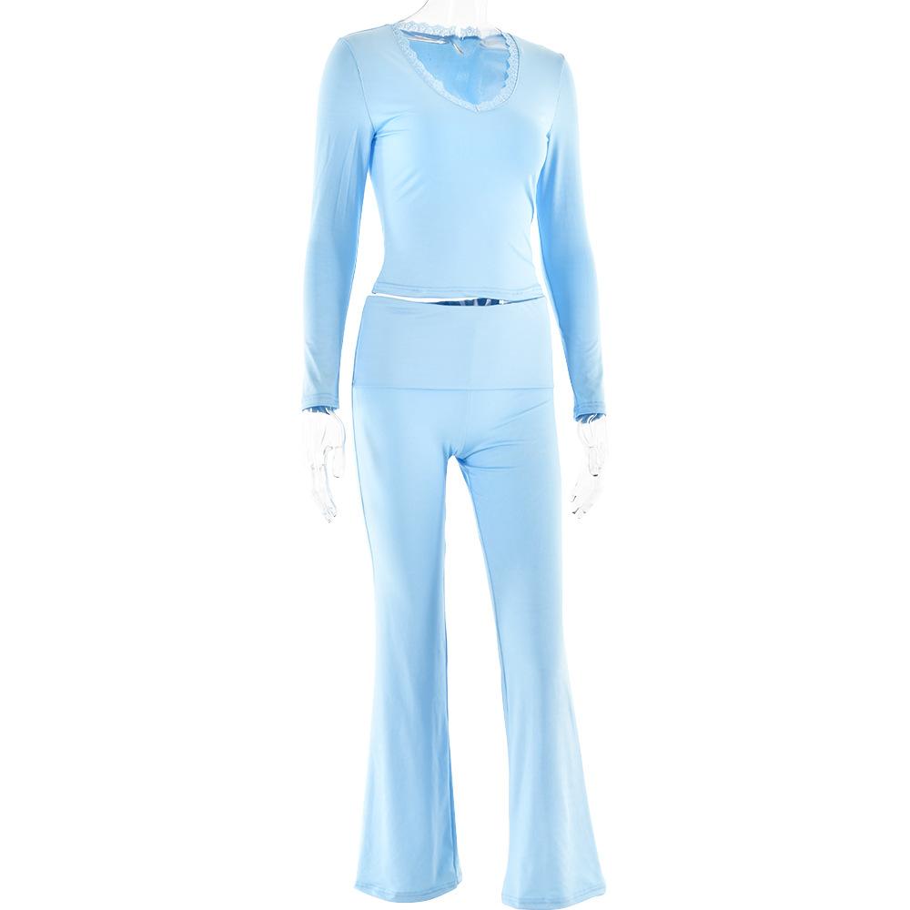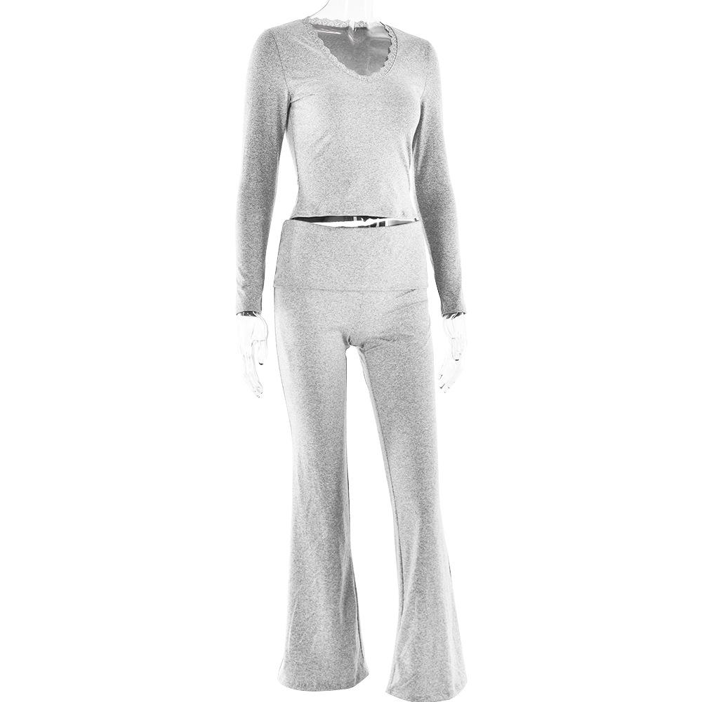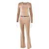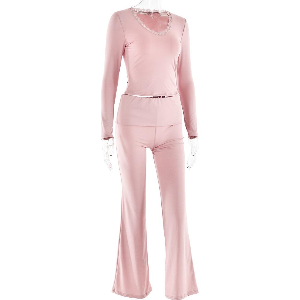 Traje Nuevo Más Vendido de Exportación Europea y Americana 2025 Sexy Slim Color Puro Cuello en V Ombligo Descubierto Pantalones Slim Conjunto de Dos Piezas para Mujer