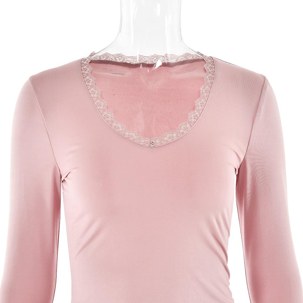 khaki, red, gray, blue, white, black, Made of milk silk fabric, lace stitching on the chest, double-layer design on the waist