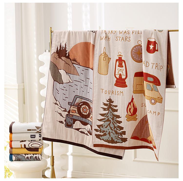 Nueva toalla de baño de algodón estilo nórdico Ins, toalla envolvente de baño con dibujos animados para parejas, toalla de baño de gasa suave y absorbente.