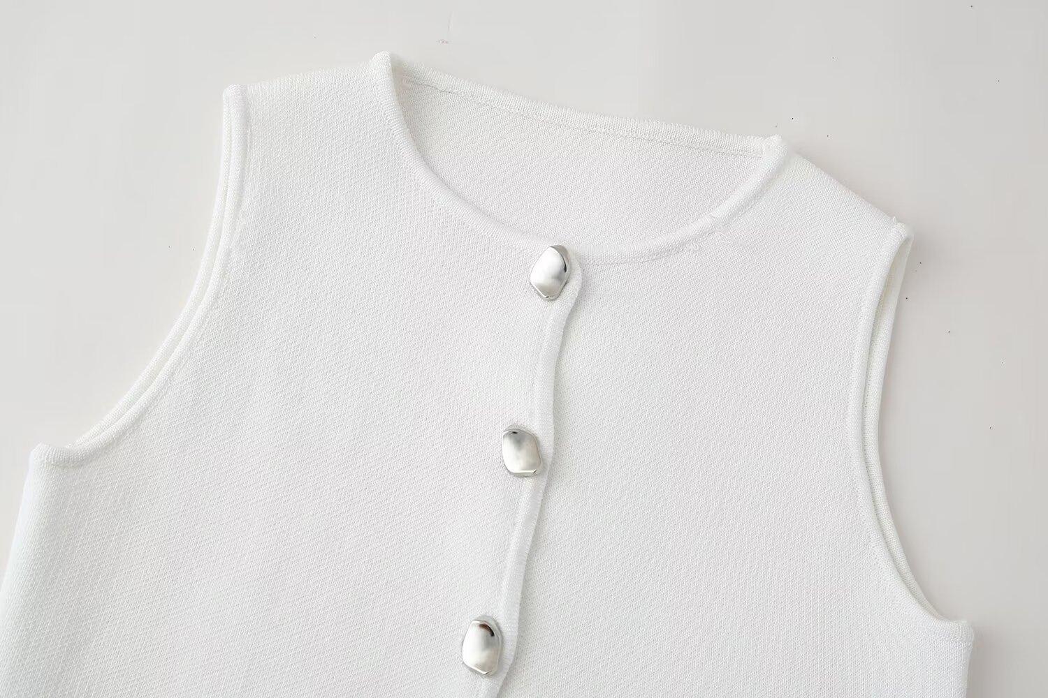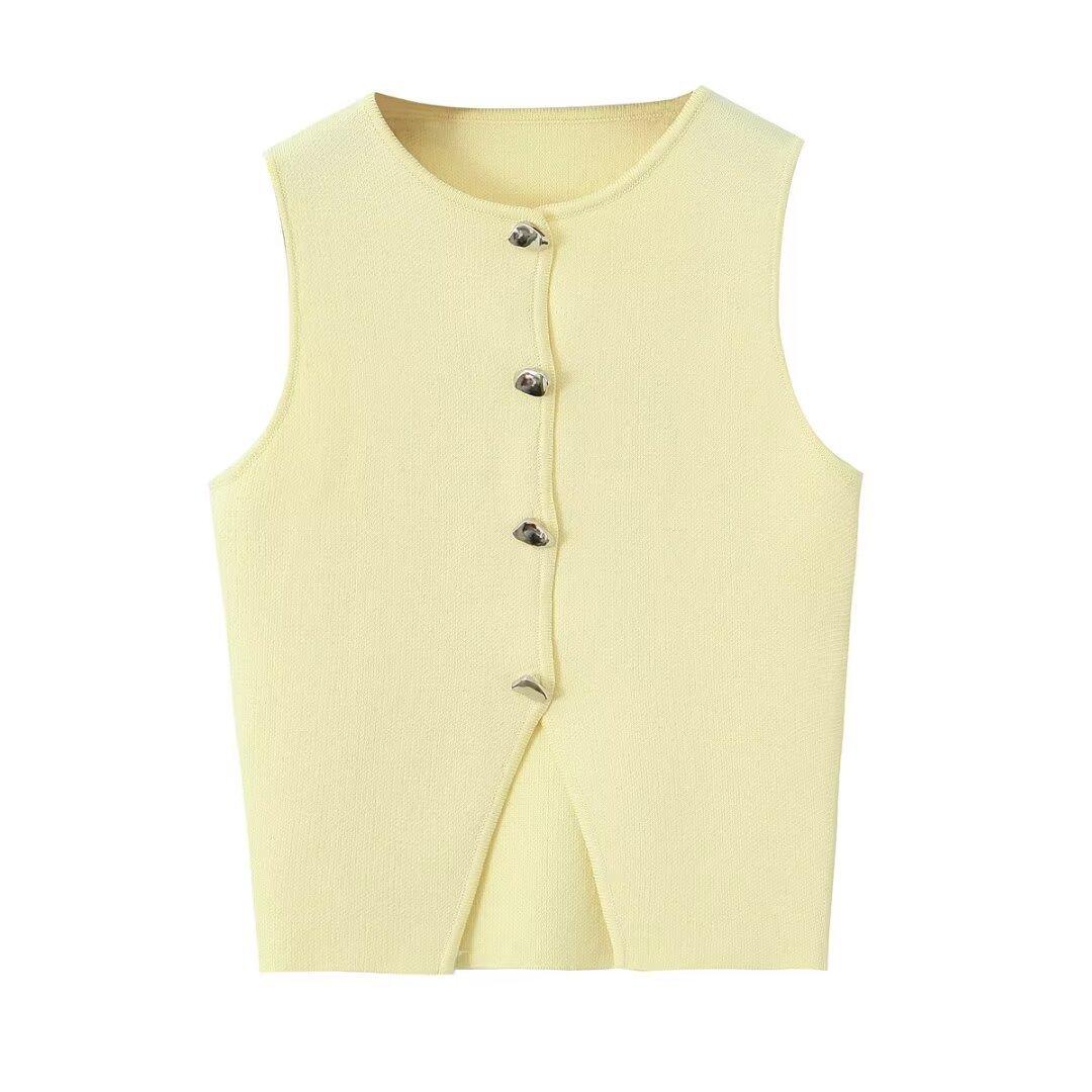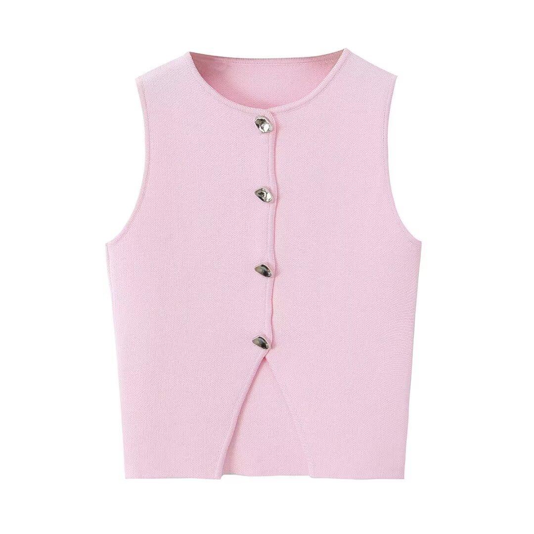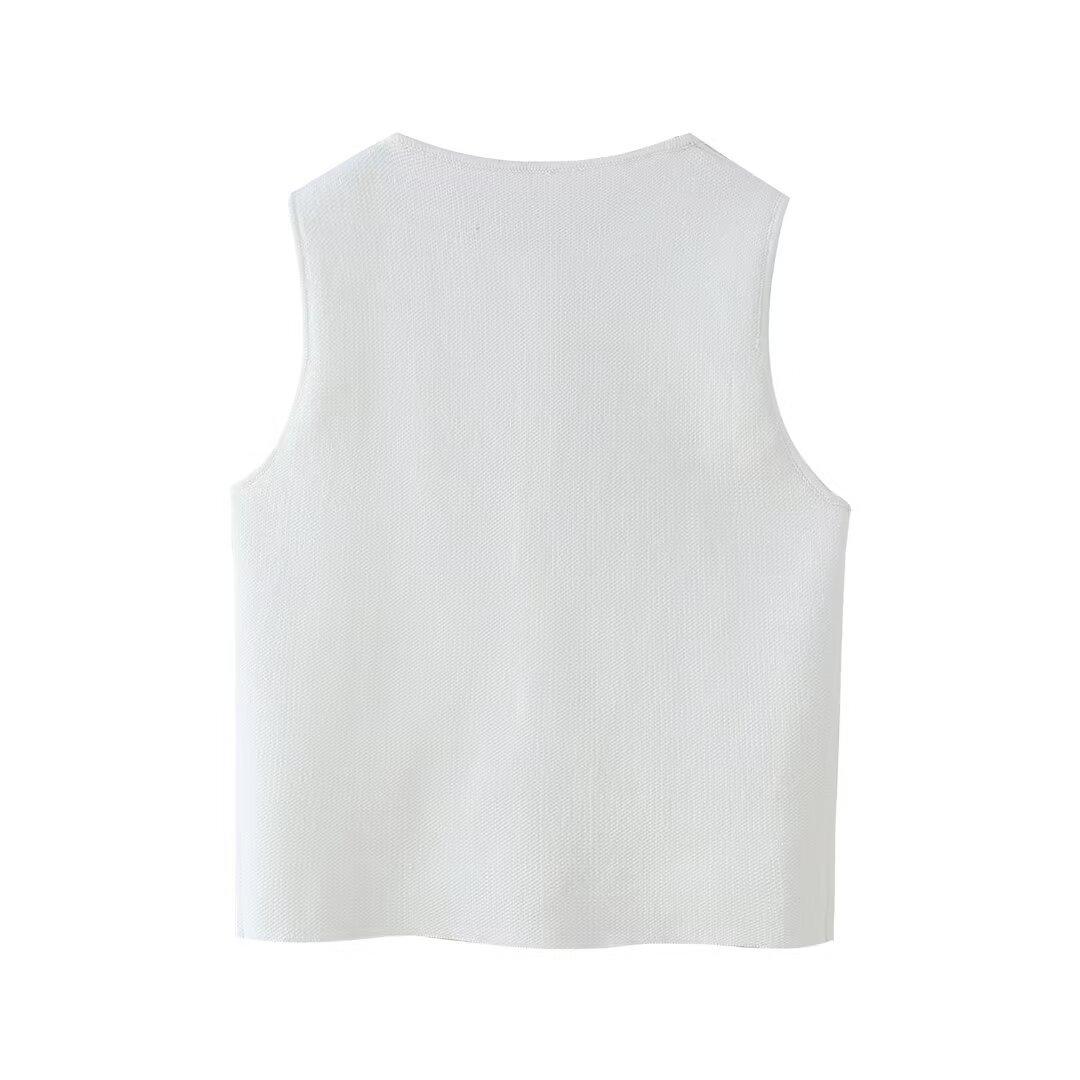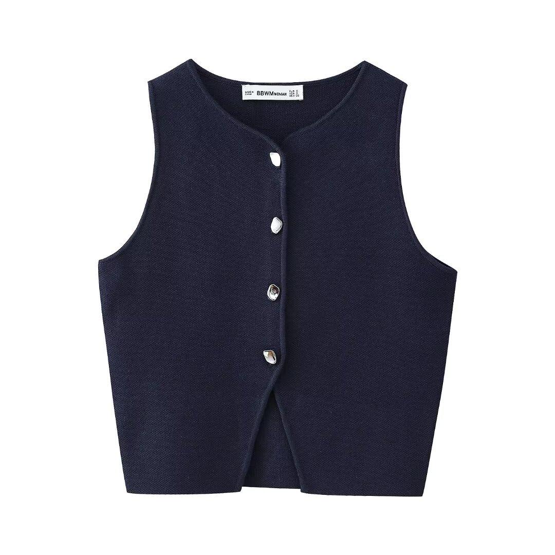Venta al por mayor transfronteriza de verano 2024, cárdigan de moda europea y americana para mujer, chaqueta de punto corta con botones A34879