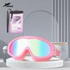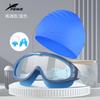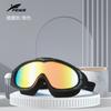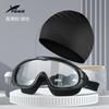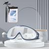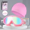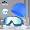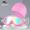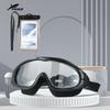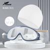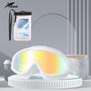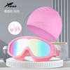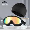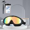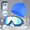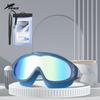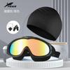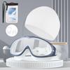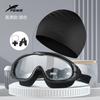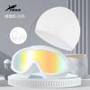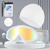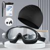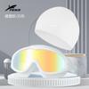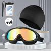 Gafas de natación para adultos, impermeables, antivaho, HD, lisas, para hombres y mujeres, con montura grande galvanizada, gorro de natación