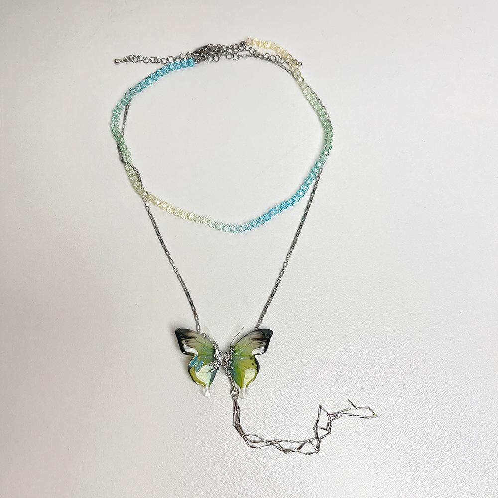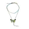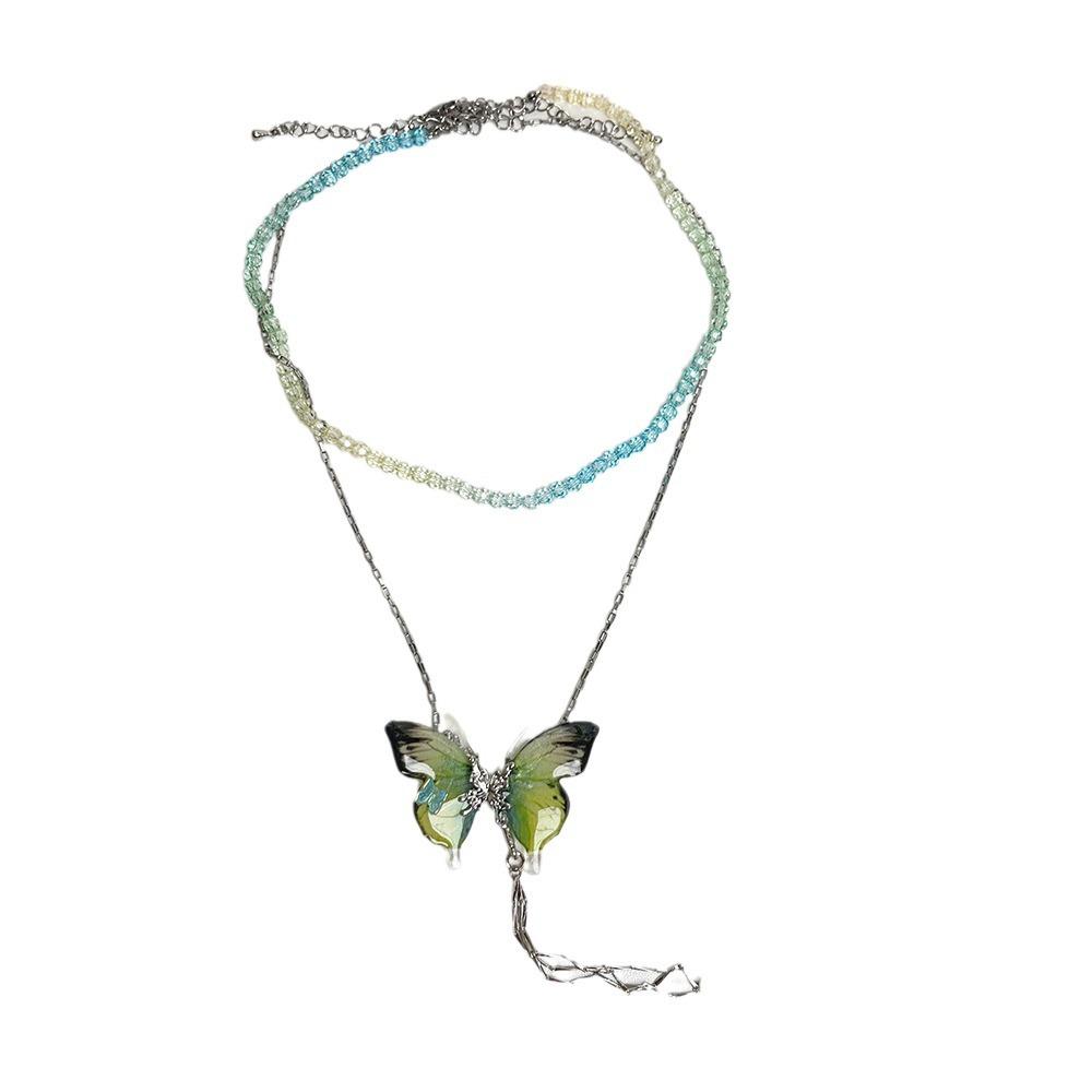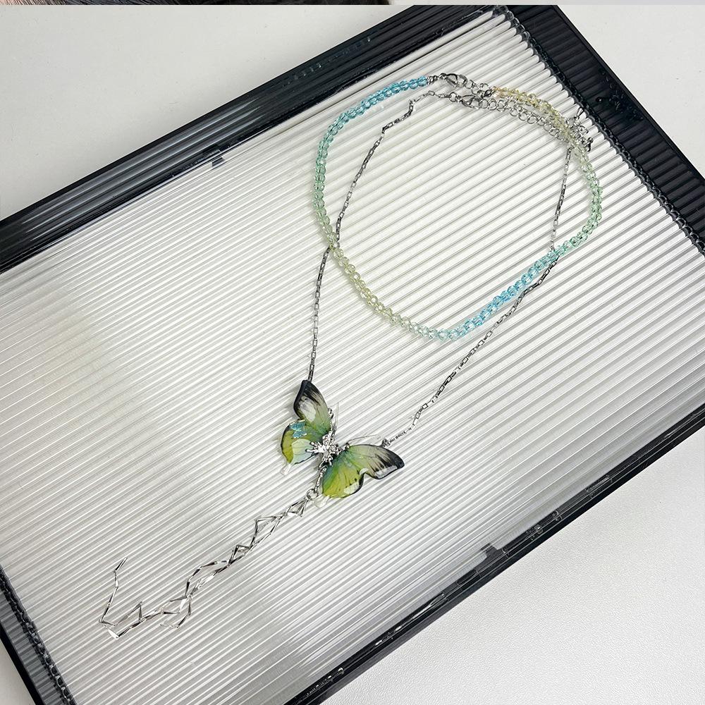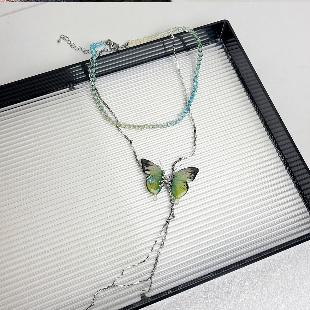 Collar con colgante de borla de mariposa verde de nicho, elegante y moderno, para mujer, de alta calidad, combinable con todo, con múltiples capas y cuentas en la clavícula.