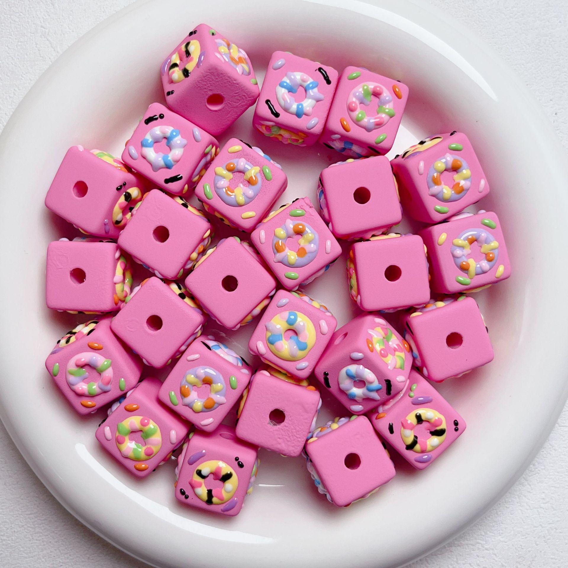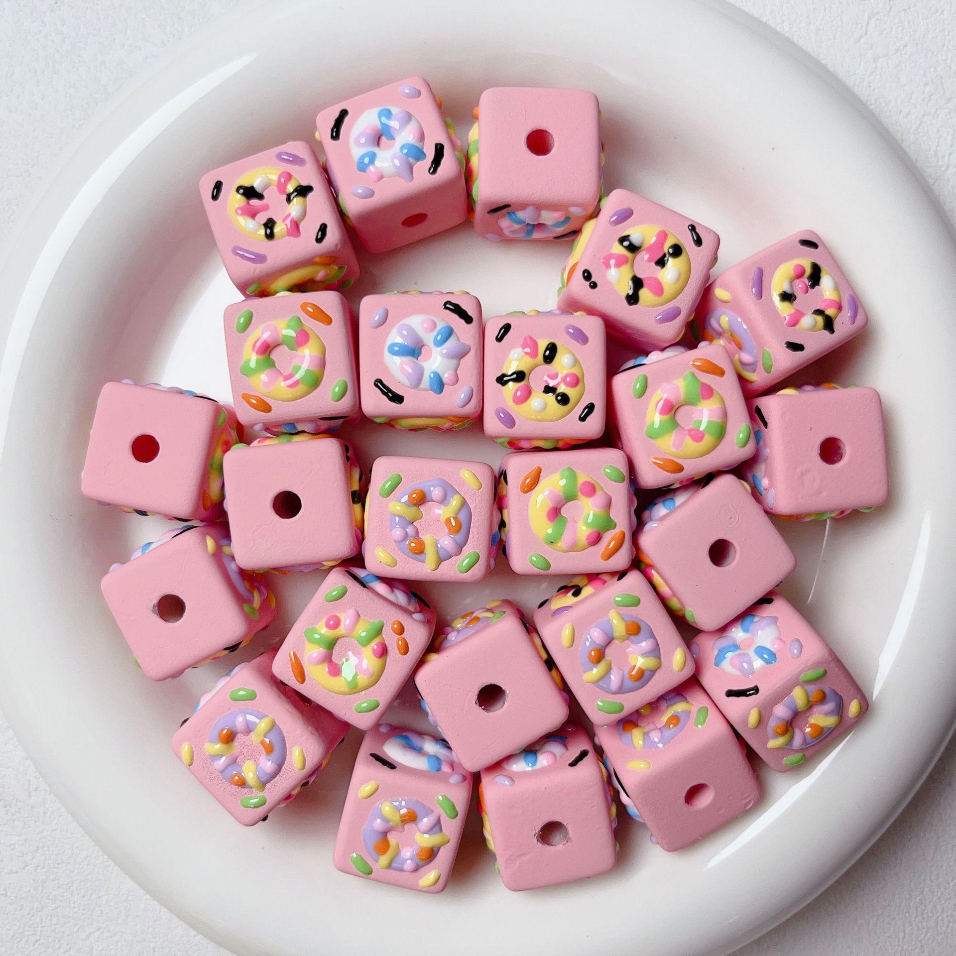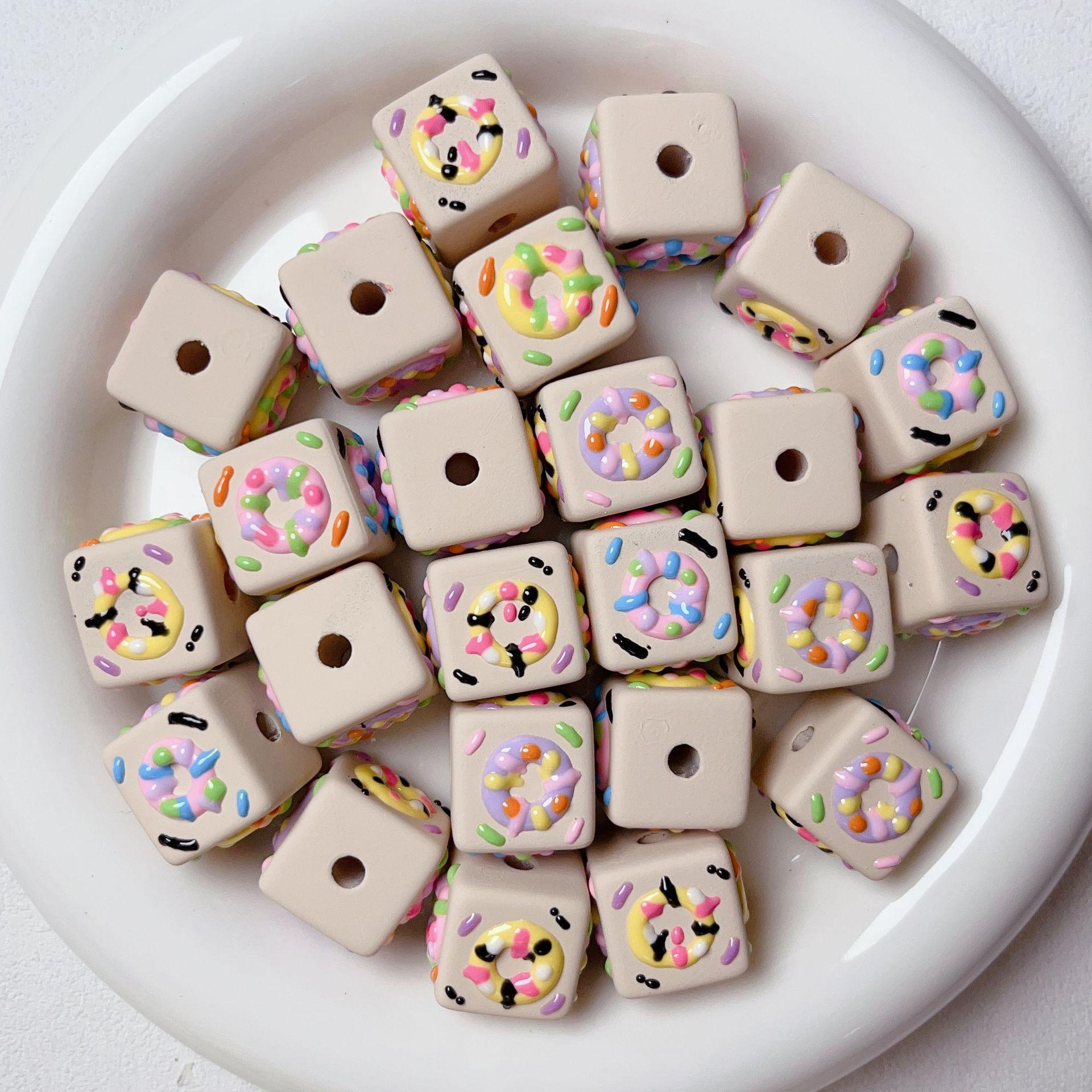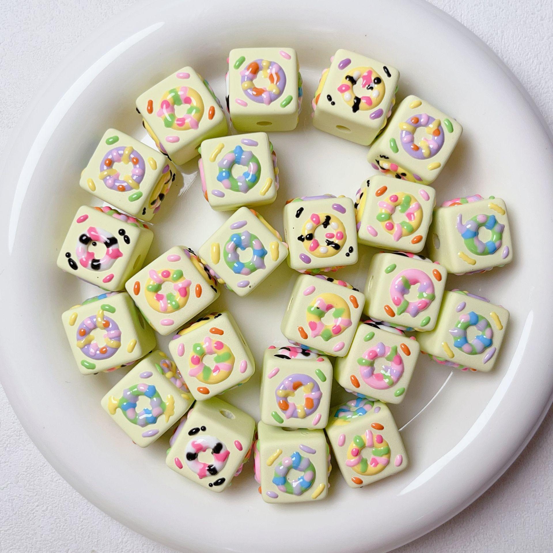 Lindo macarrón cuadrado donut cuentas pintadas a mano cuentas sueltas de agujero recto pulsera de cuentas hecha a mano material de joyería