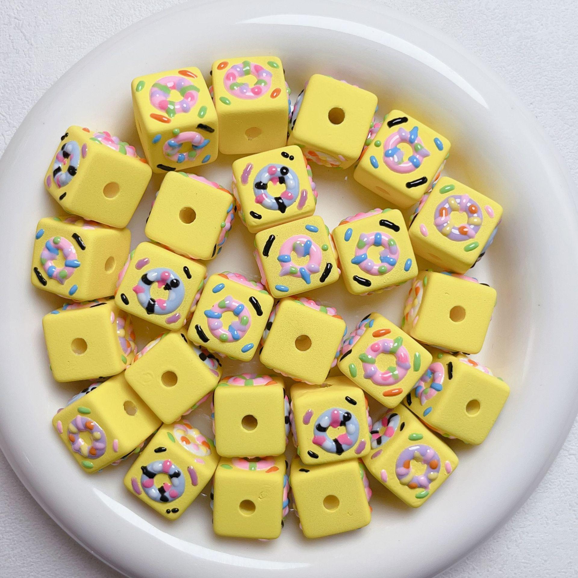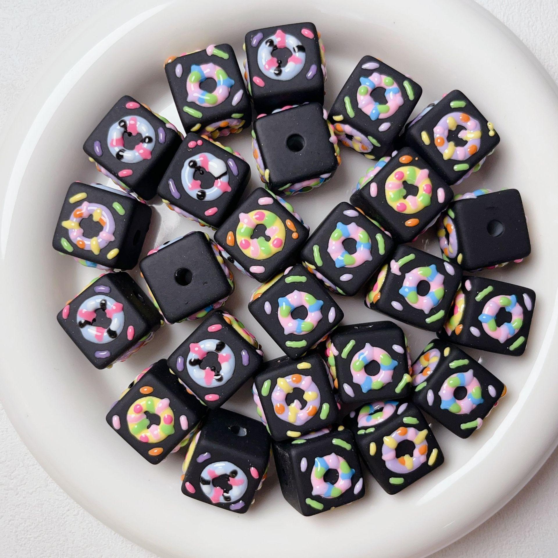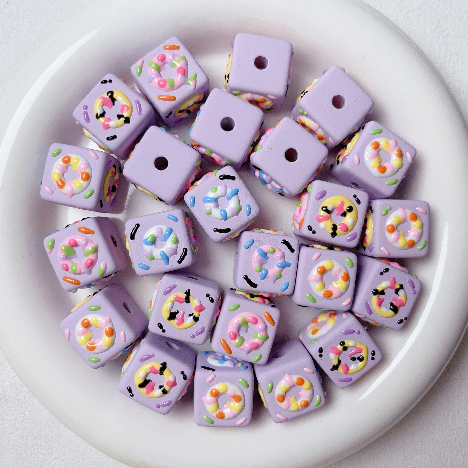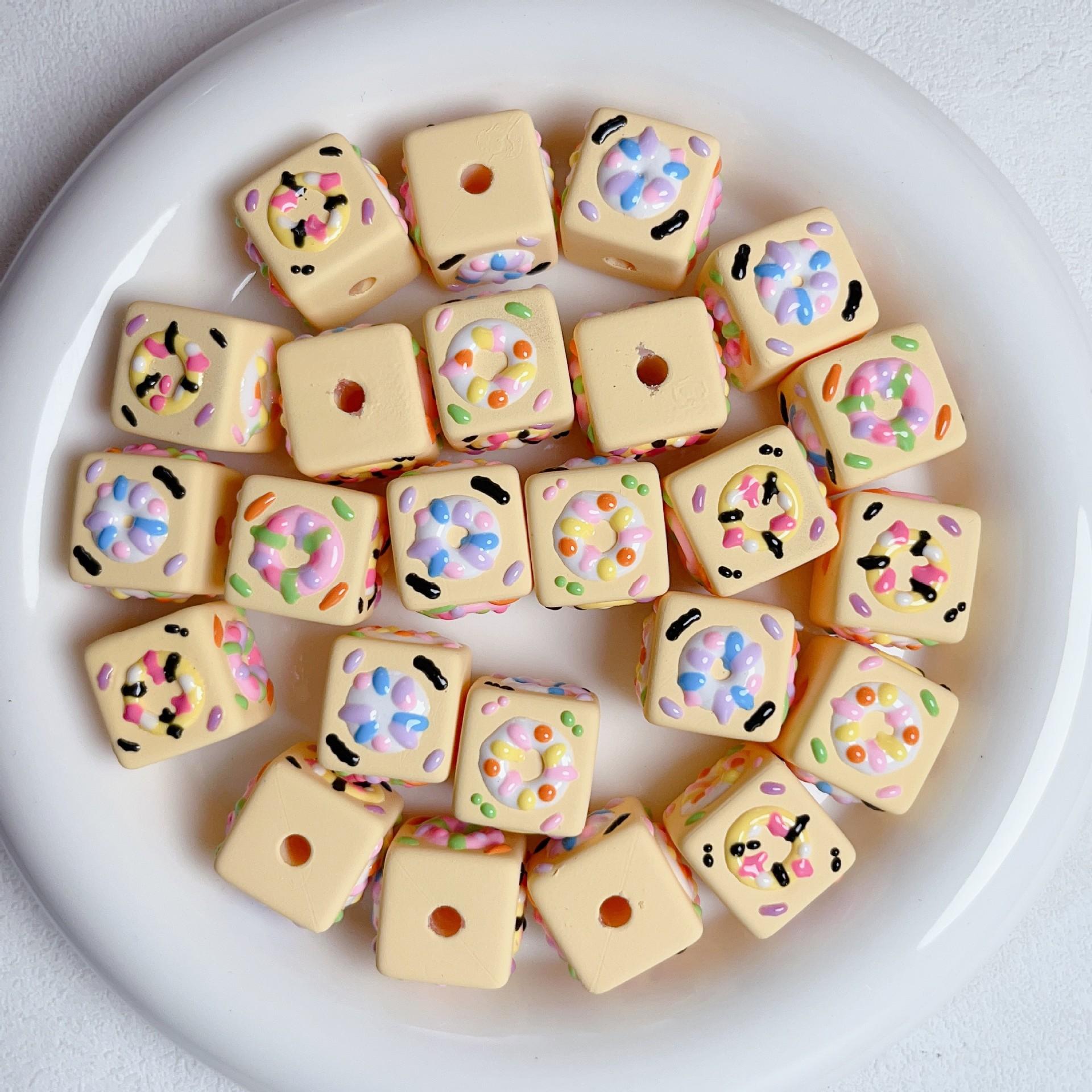 Lindo macarrón cuadrado donut cuentas pintadas a mano cuentas sueltas de agujero recto pulsera de cuentas hecha a mano material de joyería