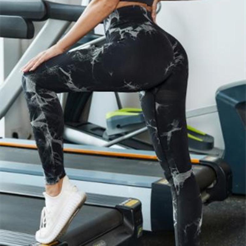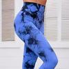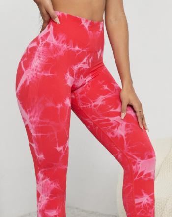 Pantalones de yoga tie-dye para mujer, ajustados, sin costuras, de cintura alta, color melocotón, para correr y hacer deporte.