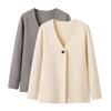 Amazon 2024, comercio exterior transfronterizo europeo y americano, primavera y verano, nueva camiseta holgada informal de manga larga con cuello en V de color sólido para mujer